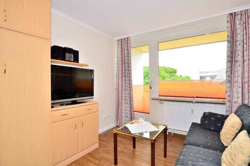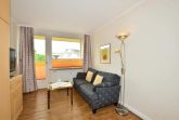 1-Zimmer-Nichtraucher-Ferienwohnung (ca. 25 qm) im Hochparterre zur Seeseite mit Westloggia (Nachmittagssonne, mit Balkonmöbeln und Auflagen) für max. 2 Personen.
