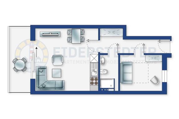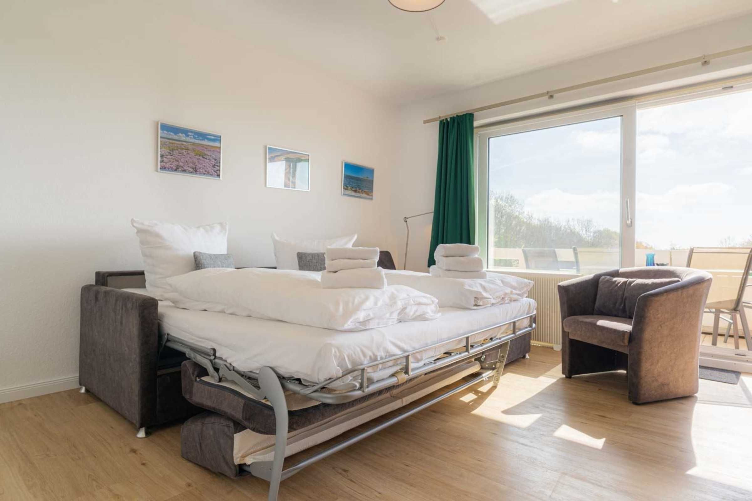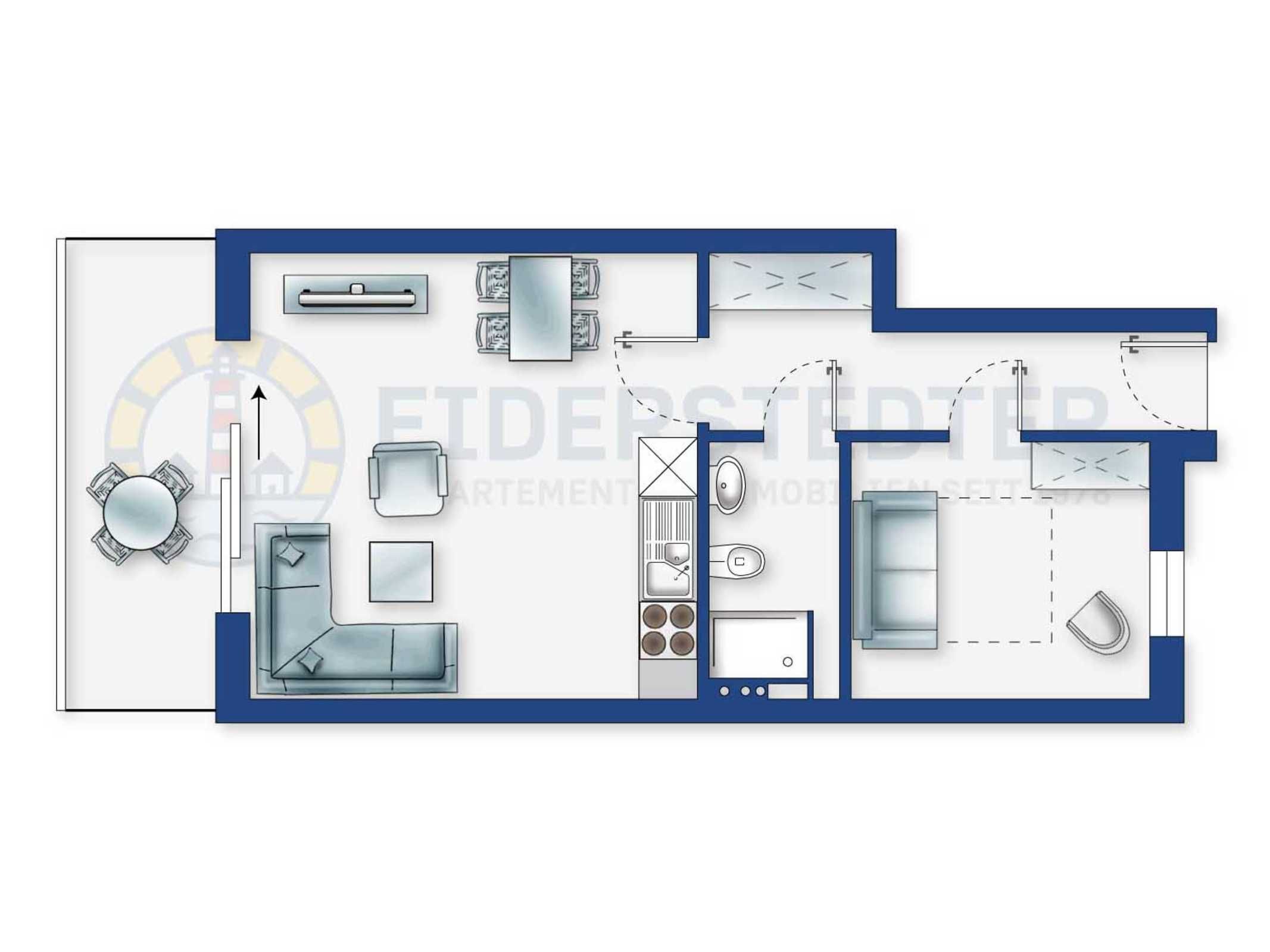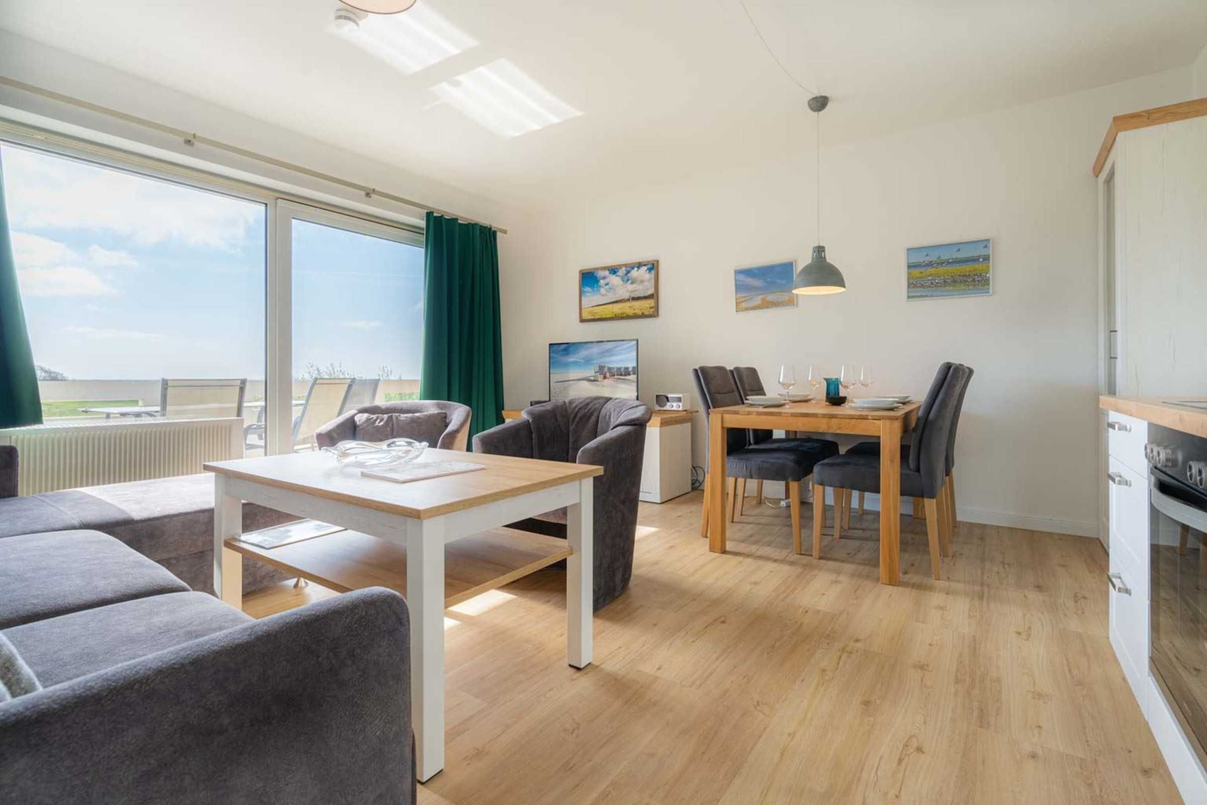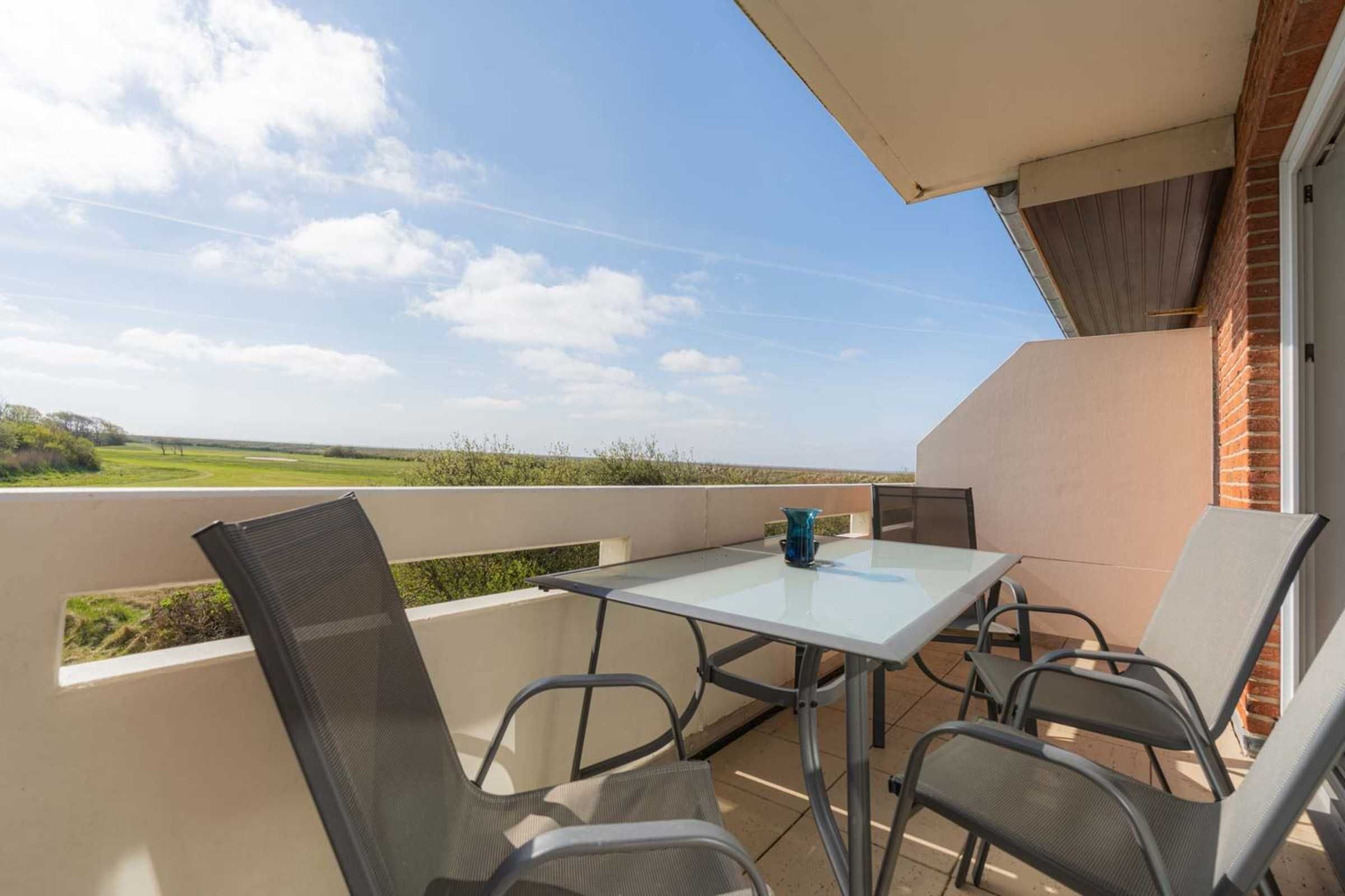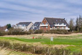Schöne 2-Zimmer-Ferienwohnung Dannebrog im Haus Am Golfplatz mit ca. 45 m² auf 1 Ebene (1. OG) für bis zu 4 Personen (Wohlfühlbelegung: max. 2 Erwachsene). In strandnaher Lage direkt am Deichübergang im Ortsteil Böhl in St.Peter-Ording. Genießen Sie den traumhaften Ausblick aus dem Wohnzimmer auf den schönen grünen Golfplatz, den Deich mit Schafen bis weit auf die Nordsee hinaus. Sehr komfortabel ausgestattet und geschmackvoll eingerichtet. Ein Domizil zum Verwöhnen!