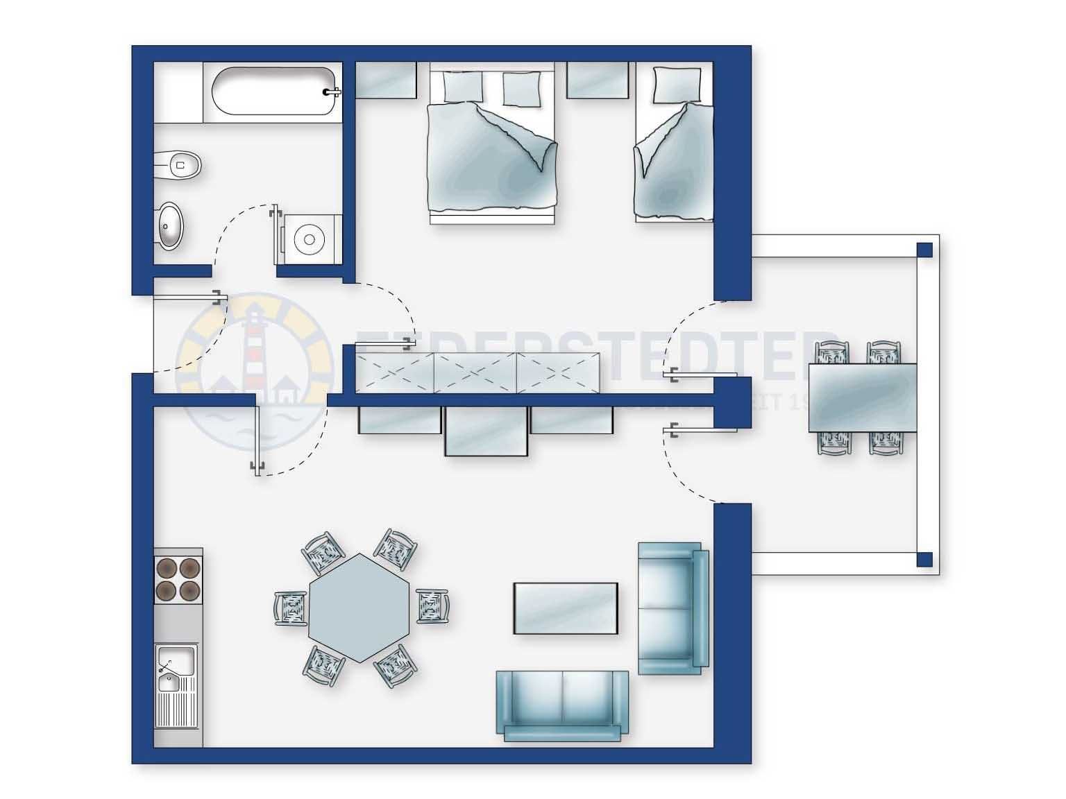 Gemütliche 2-Zimmer-Ferienwohnung Irmi im Haus Zur Sonnenseite mit ca. 62 m² auf 1 Ebene (OG) für bis zu 5 Personen (Wohlfühlbelegung: max. 2 Erwachsene). In zentraler Lage in der alten Eiderstedter Hauptstadt Garding. Das Ortszentrum mit Restaurants und Einkaufsmöglichkeiten ist fußläufig erreichbar, in wenigen Auto-Minuten sind Sie am großen Strand von St. Peter-Ording. Garding liegt im Herzen der schönen Halbinsel Eiderstedt. Genießen Sie Ihren Urlaub fernab des Trubels und doch nah zu allen Ausflugszielen. Ideal für einen schönen Familienurlaub. Hunde sind herzlich willkommen.