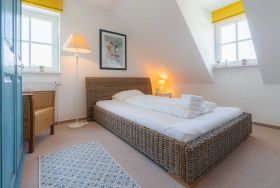 1. Schlafzimmer mit franz. Doppelbett (140x200cm), Kleiderschrank und Sessel.