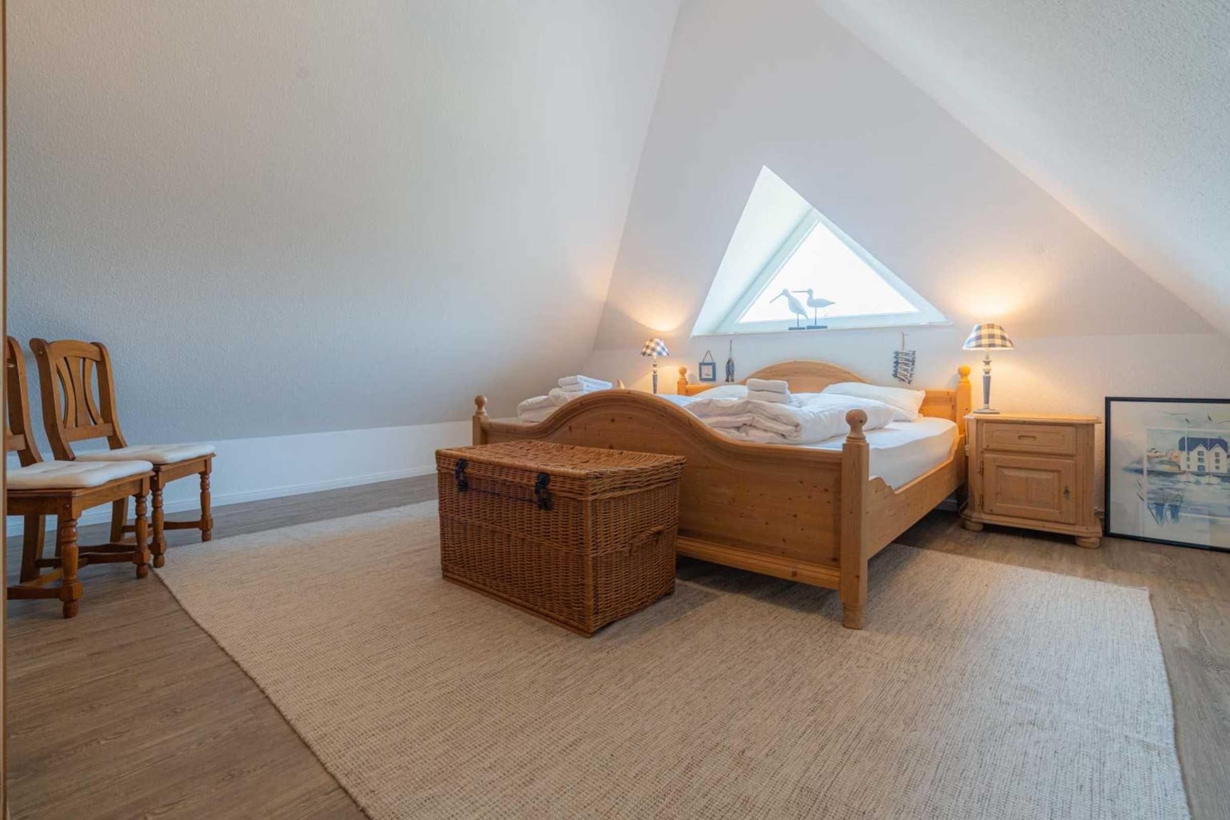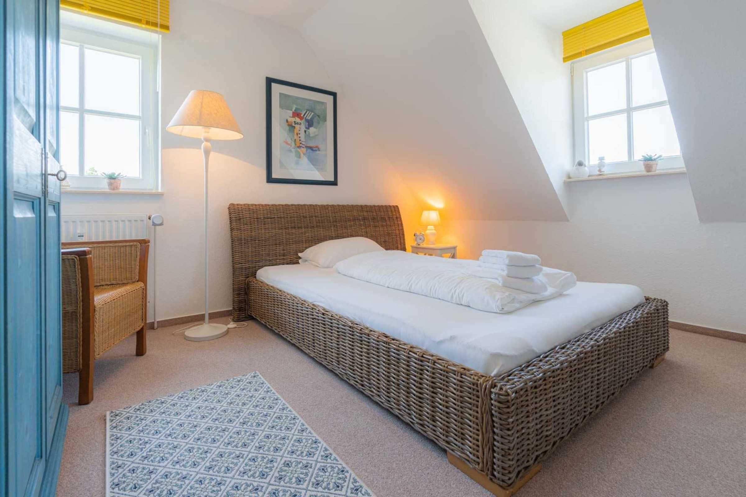 2. Schlafzimmer mit Doppelbett (2x 90x200cm), Kleiderschrank, Kommode und zwei Stühlen.