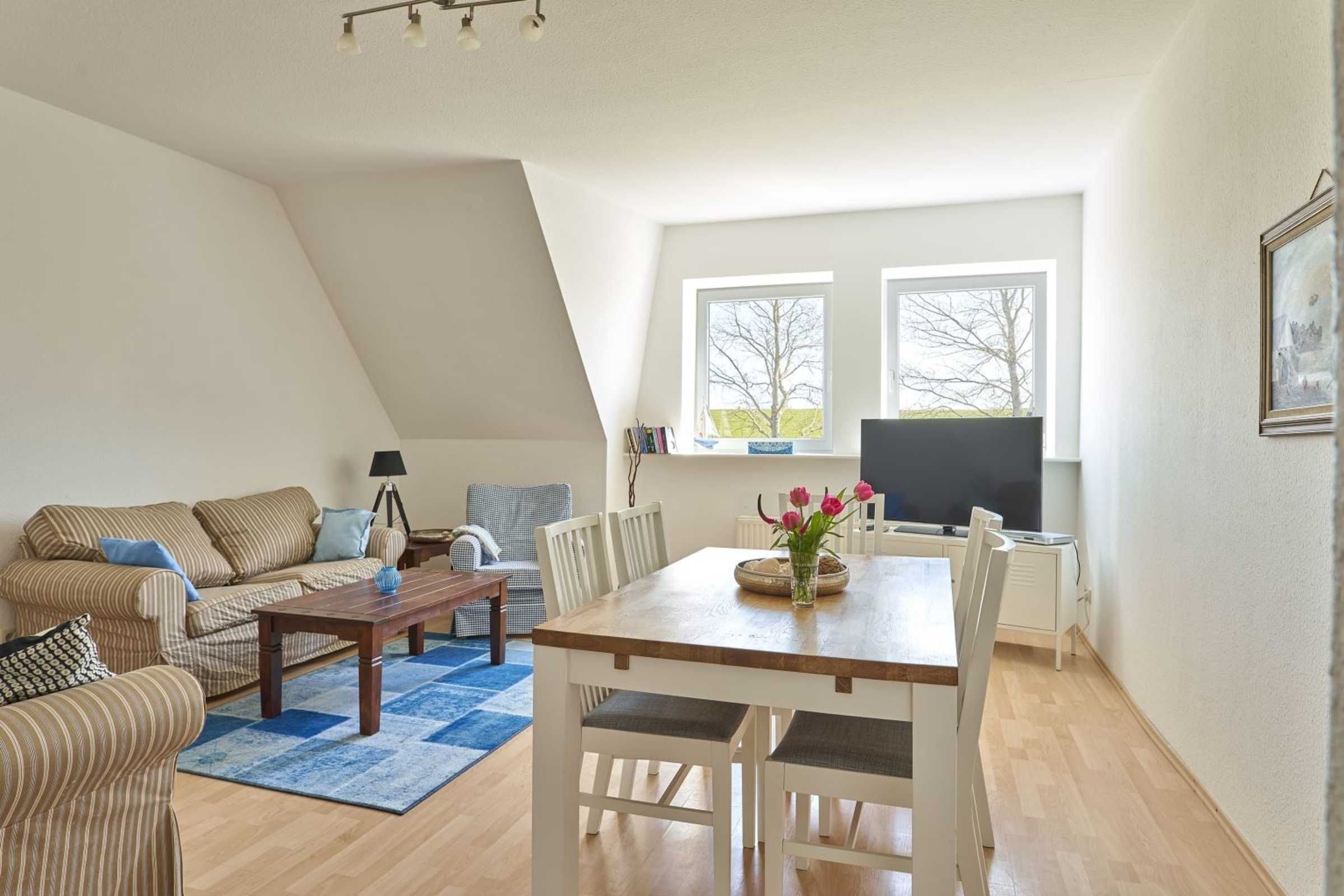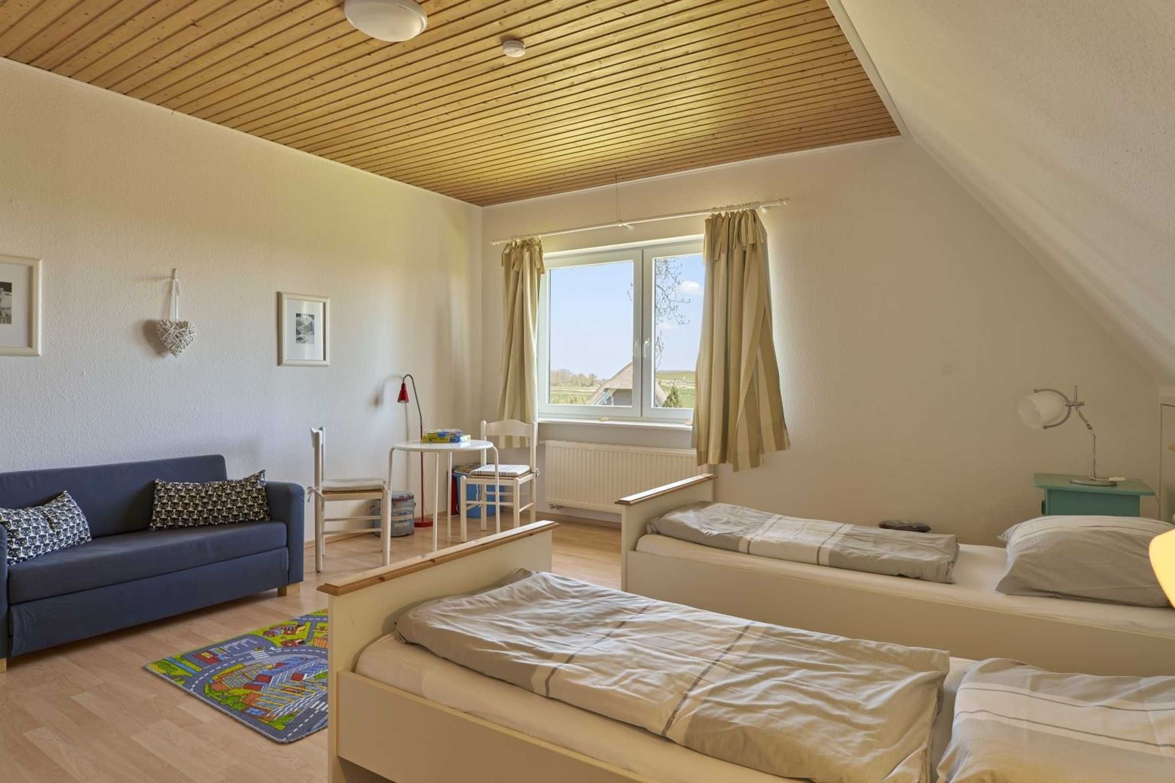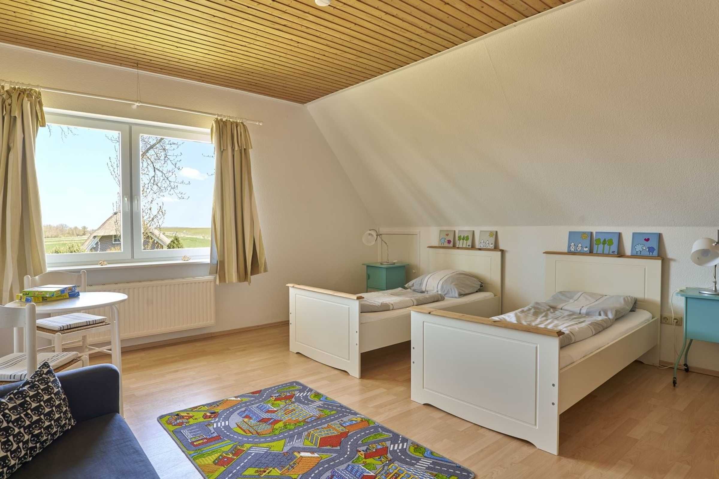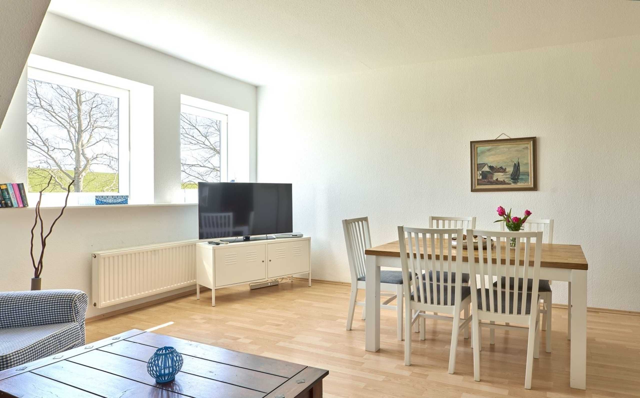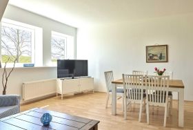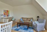 Schöne 3-Zimmer-Ferienwohnung Strandkrabbe im Haus Deichwelle - landestypisch unter Reet - mit ca. 88 m² auf 1 Ebene (OG) für bis zu 5 Personen (Wohlfühlbelegung: max. 4 Erwachsene). In ruhiger, naturnaher Lage direkt hinter dem Deich in Vollerwiek. Zur Badestelle ist es nur ein kurzer Weg zu Fuß. Ein Hund ist herzlich willkommen.