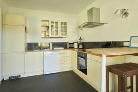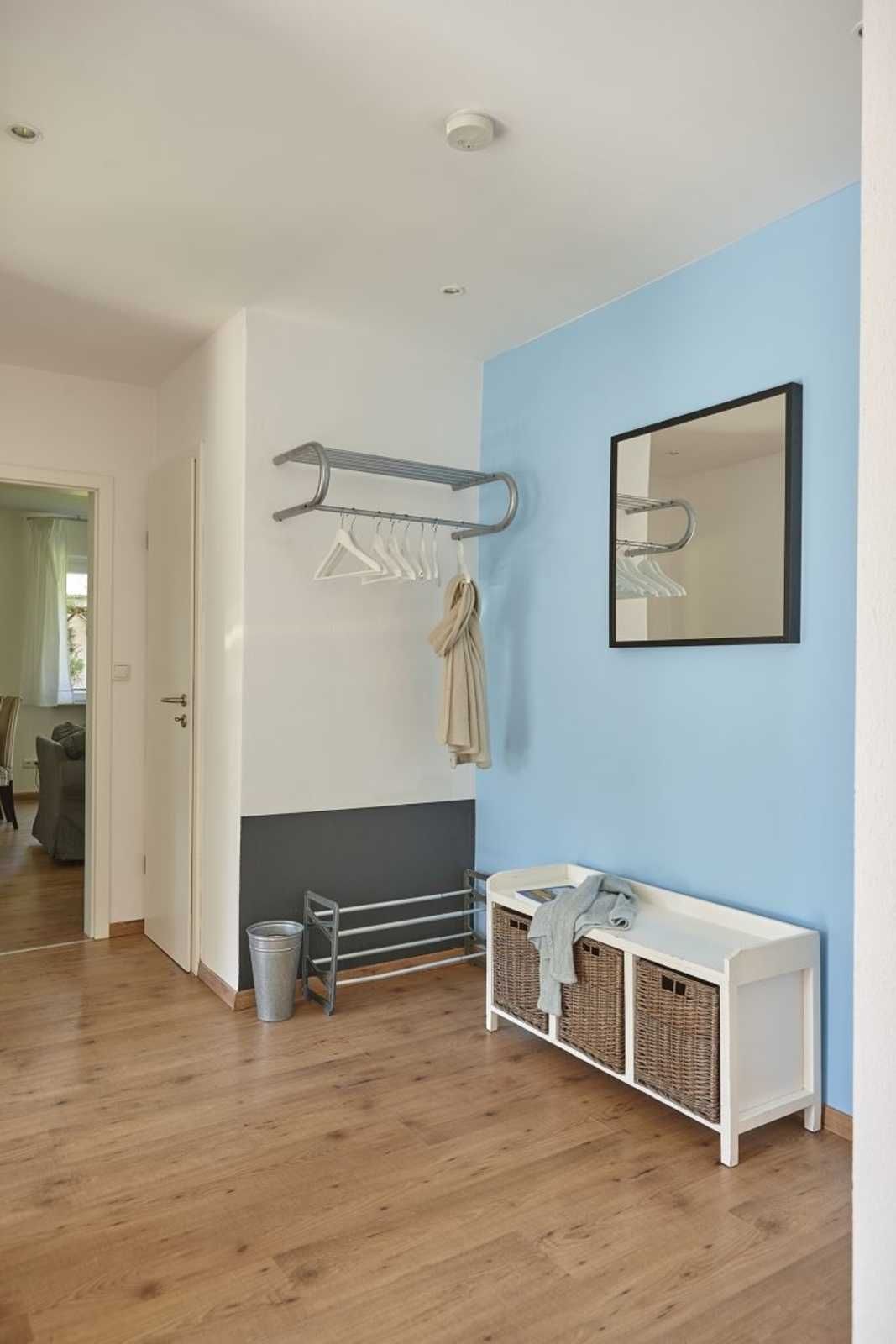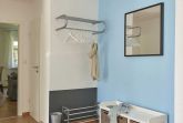 Großer Flur mit Garderobe, Spiegel und Schuhbank im Eingangsbereich. Gäste-WC mit Tageslicht und Handtuchwärmer. Abstellkammer mit Staubsauger. Kinderhochstuhl und -reisebett (nur Gestell) kostenlos in der Wohnung vorhanden.
