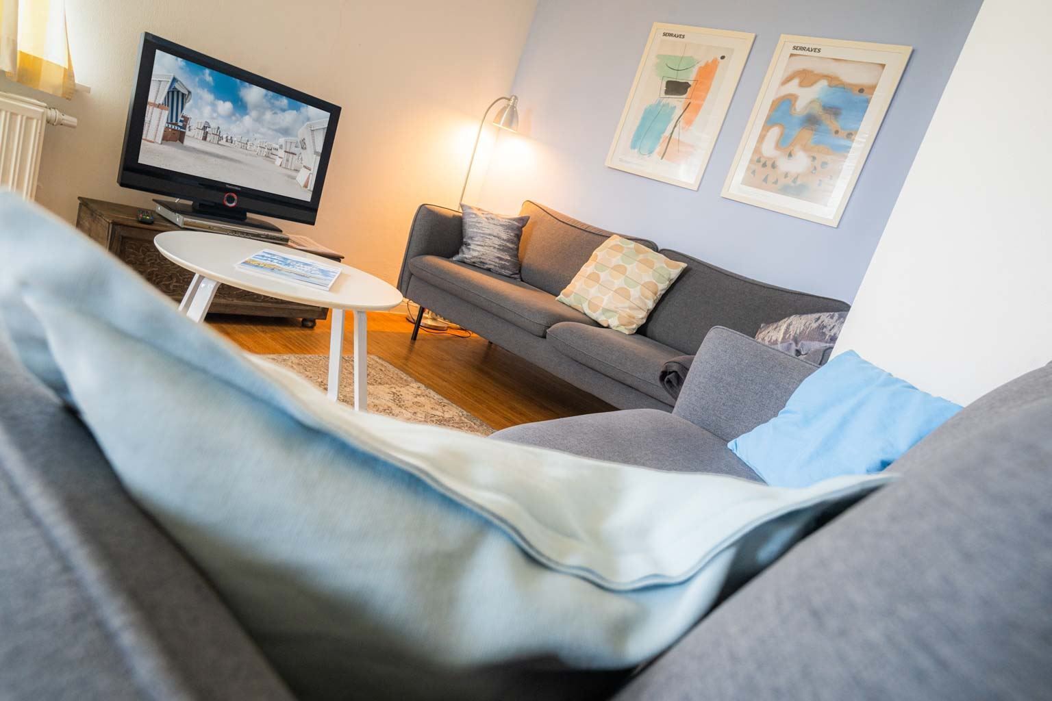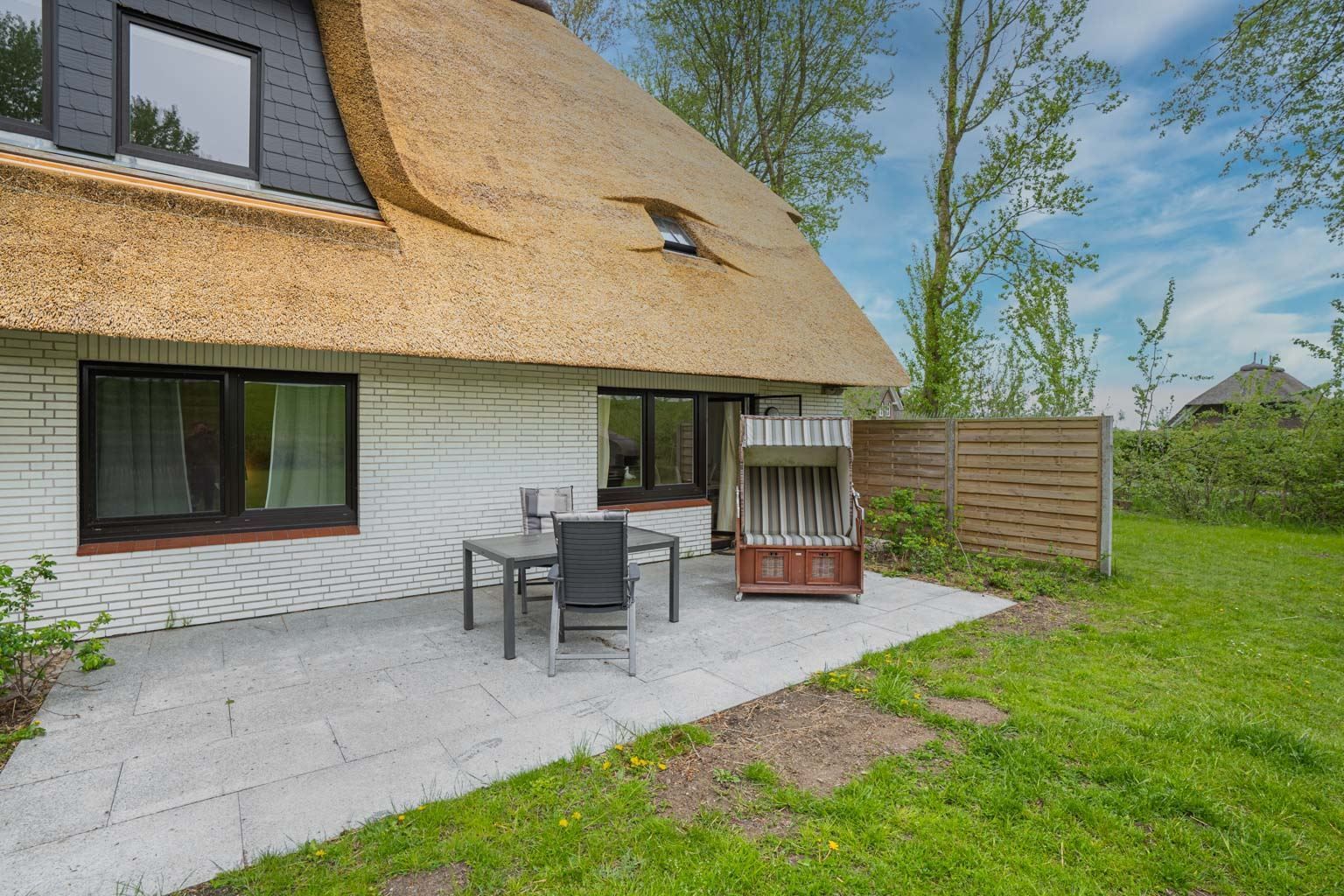 Schöne 3-Zimmer-Ferienwohnung Wattläufer im Haus Deichwelle - landestypisch unter Reet - mit ca. 78 m² auf 1 Ebene (EG) für bis zu 4 Personen. In ruhiger, naturnaher Lage direkt hinter dem Deich in Vollerwiek. Zur Badestelle ist es nur ein kurzer Weg zu Fuß. Ein Hund ist herzlich willkommen.