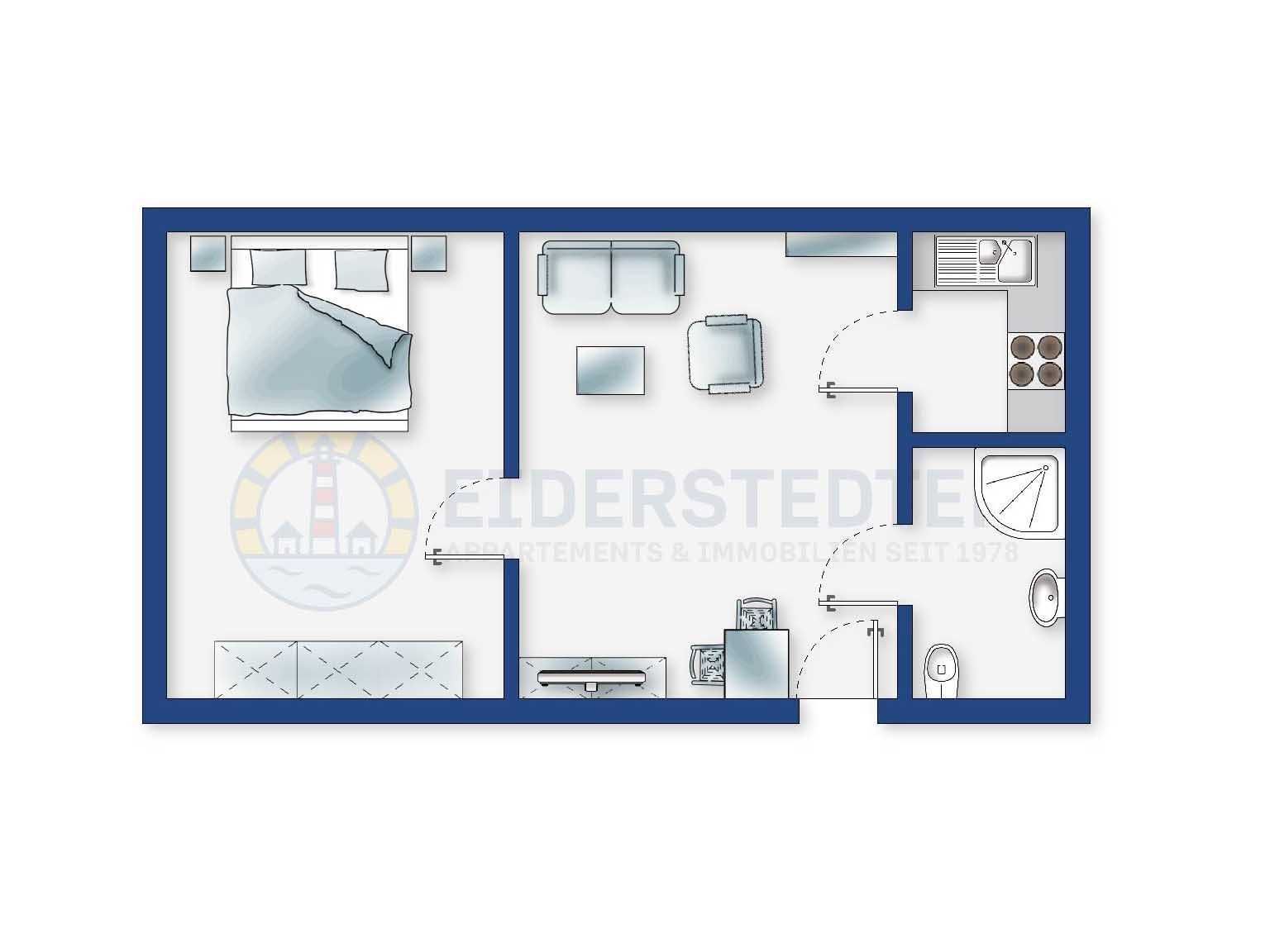 Schöne 2-Zimmer-Ferienwohnung im Haus Am Wald mit ca. 34 m² auf 1 Ebene (OG) für bis zu 2 Personen. Ruhige Lage im Ortsteil Bad in St. Peter-Ording. Ein Hund ist herzlich willkommen.