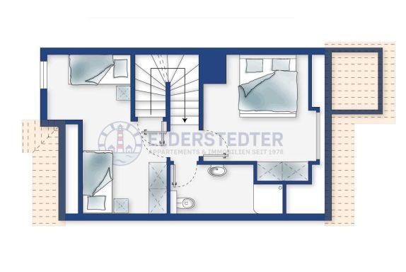 Exklusiver Mittelhausteil 2 Unsere kleine Hütte mit 3 Zimmern und ca. 58 m² auf 2 Ebenen (EG, OG) für bis zu 4 Personen. In absolut ruhiger Wohnlage im Ortsteil Ording in St. Peter-Ording. Zum Strand sind es ca. 1500m zu Fuß.