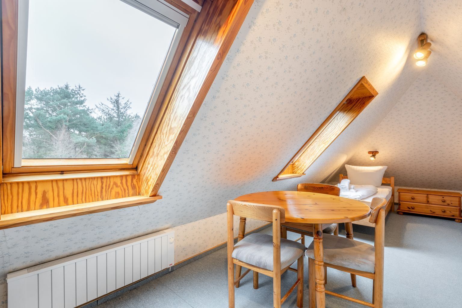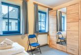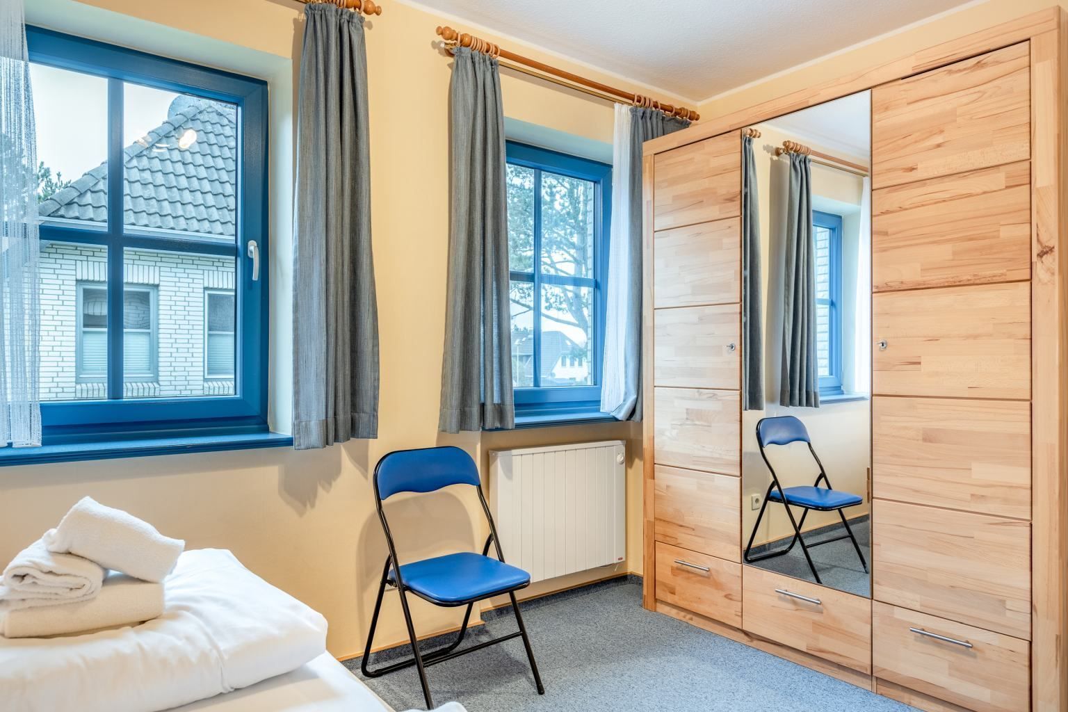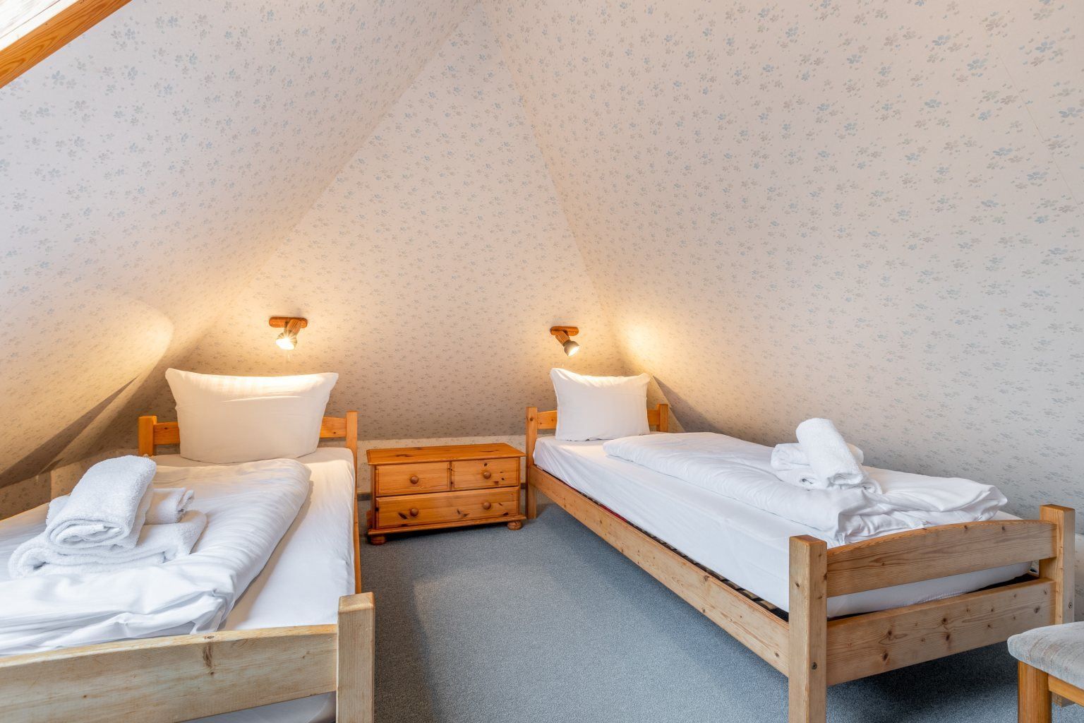 2. Schlafzimmer mit 2 Einzelbetten (je 90x200cm), Kleiderschrank, Kommode, Radio und Tisch mit 2 Stühlen. Zugang zu diesem Schlafzimmer über eine steile Treppe mit Kindergitter.