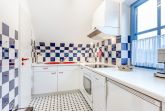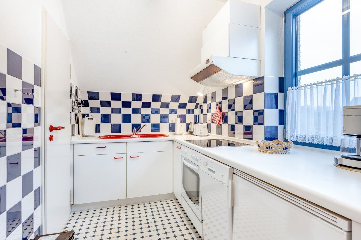 Separate Küche mit Backofen, Mikrowelle, Kühlschrank mit Gefrierfach und Geschirrspüler. Hinter einer Tür befindet sich der Zugang zum 2. Schlafzimmer.