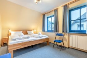 1. Schlafzimmer mit Doppelbett (2x 100x200cm) und Kleiderschrank mit Spiegel.