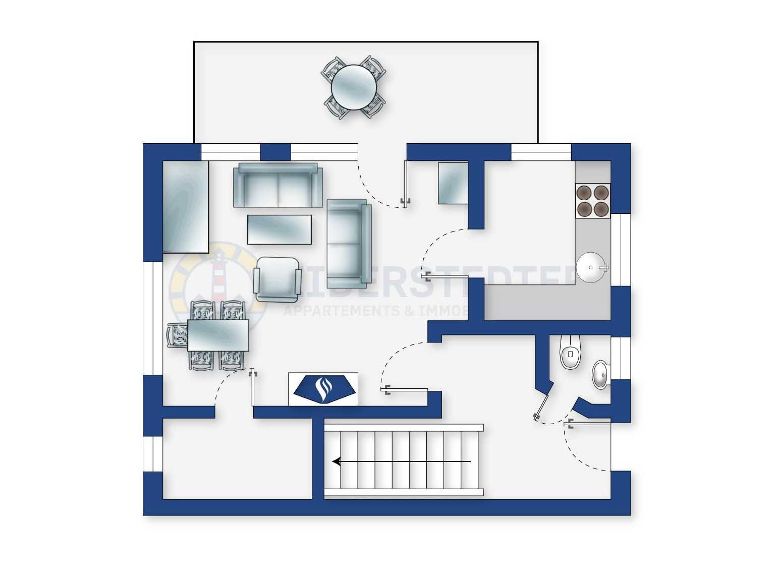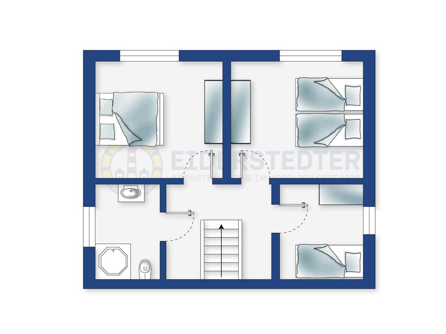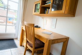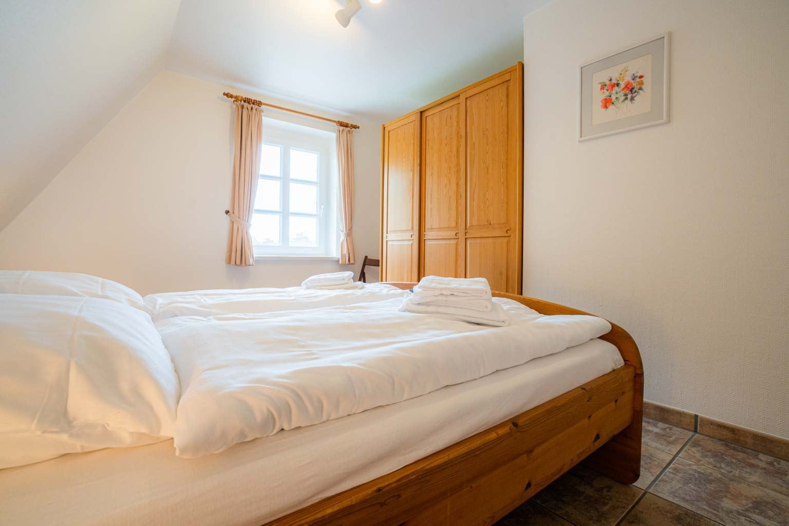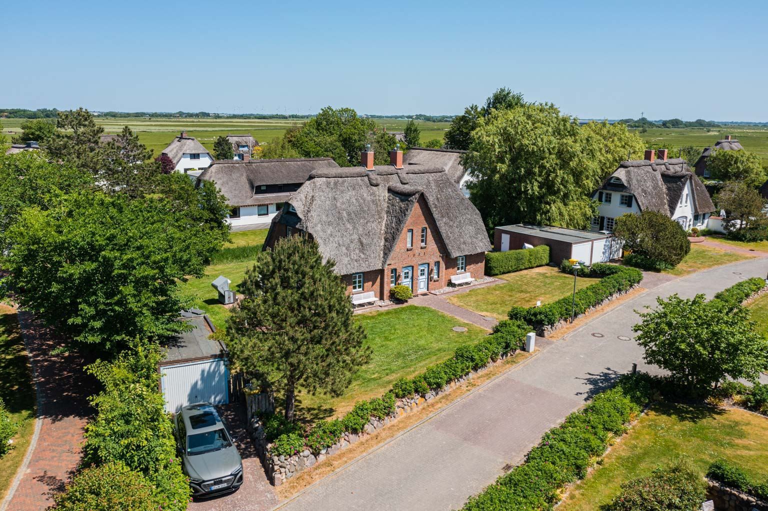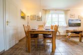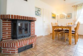 Komfortable Ferienhaushälfte im Haus Frieseneck, landestypisch unter Reet, mit 4 Zimmern und ca. 80 m² auf 2 Ebenen (EG, OG) für bis zu 5 Personen. In ruhiger Lage im Ortsteil Ording in St. Peter-Ording. Besondere Behaglichkeit spendet der schöne Kamin im Wohnzimmer. Zur Haushälfte gehören eine Terrasse und ein gemeinschaftlicher Garten um das Haus.