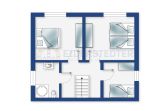 Flur mit Garderobe, Schuhablage, Spiegel und Gäste-WC mit Tageslicht. Hauswirtschaftsraum mit Waschmaschine, Staubsauger und Bügelset.