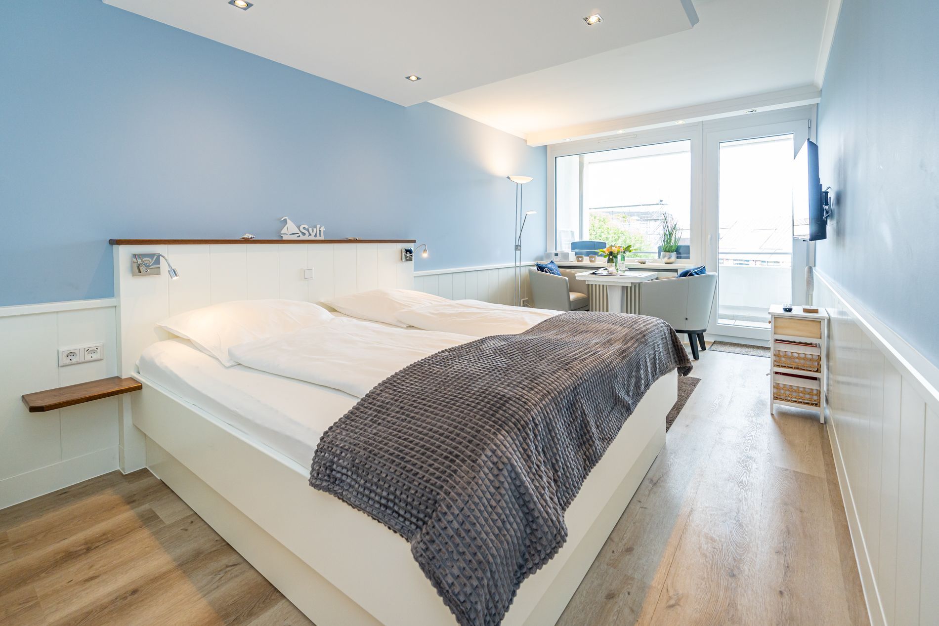 1-Zimmer-Nichtraucher-Ferienwohnung zum Wohlfühlen (ca. 25 qm), in der 1. Etage zur Seeseite mit Westloggia (Nachmittagssonne, mit Balkonmöbeln und Auflagen) ideal für 1-2 Personen.