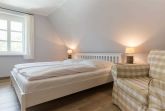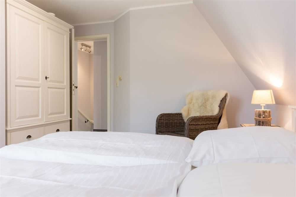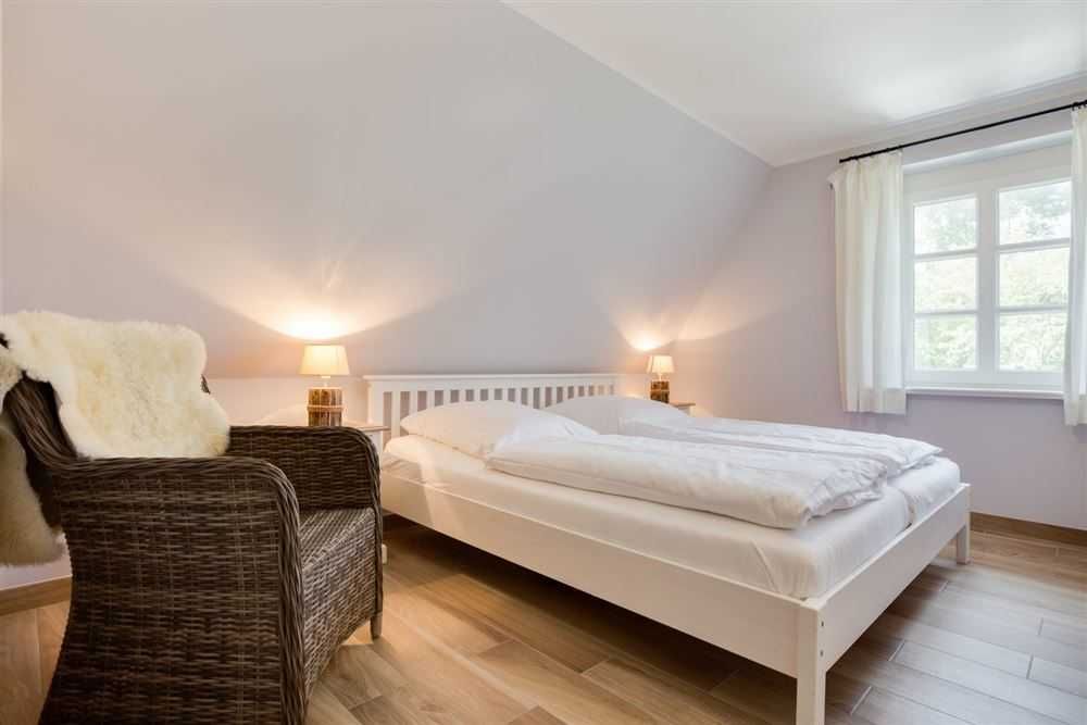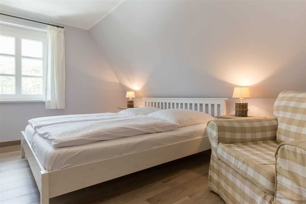 1. Schlafzimmer mit Doppelbett (2x 90x200cm), Kleiderschrank und Sessel.