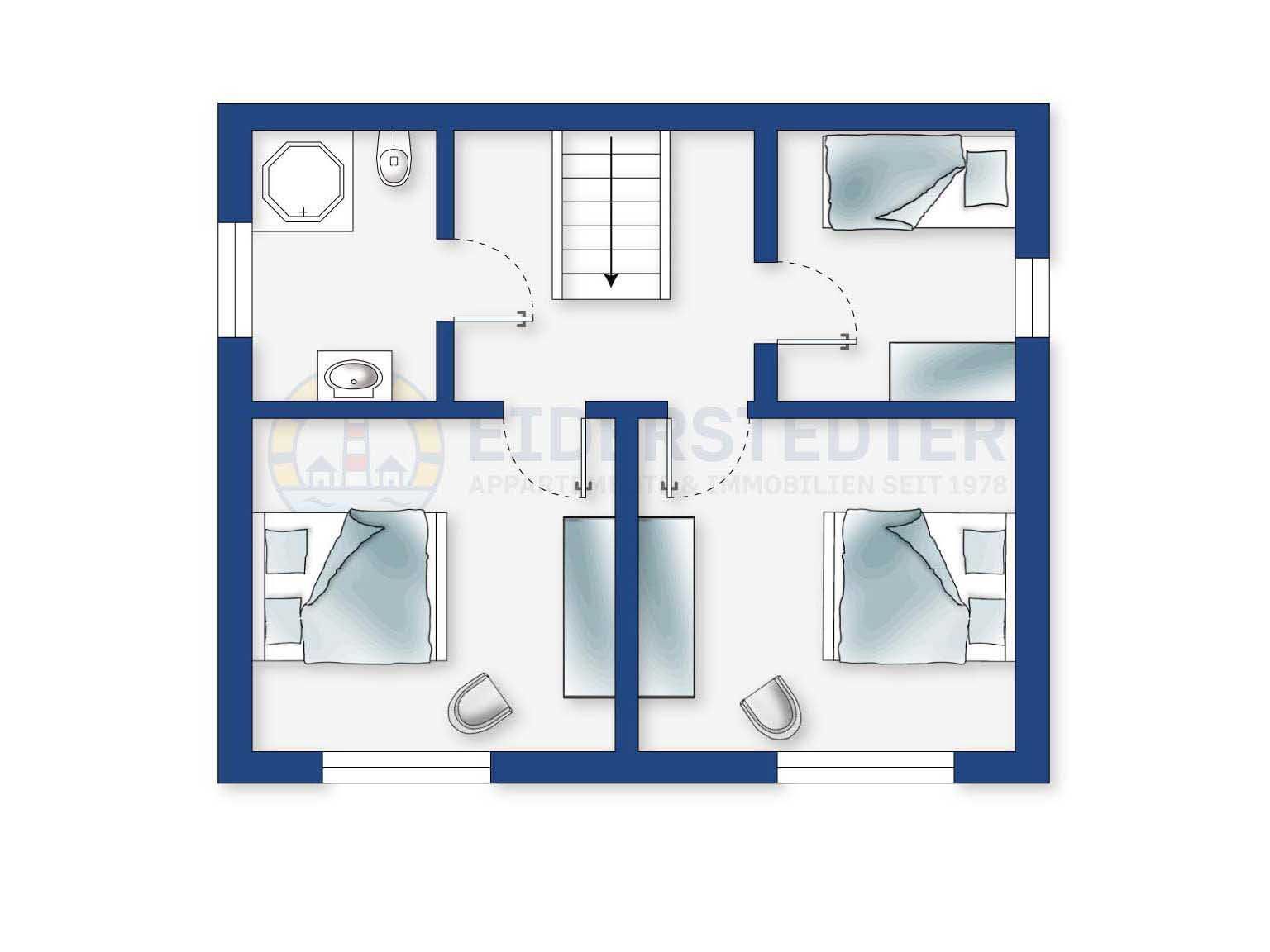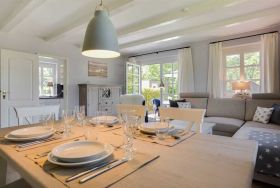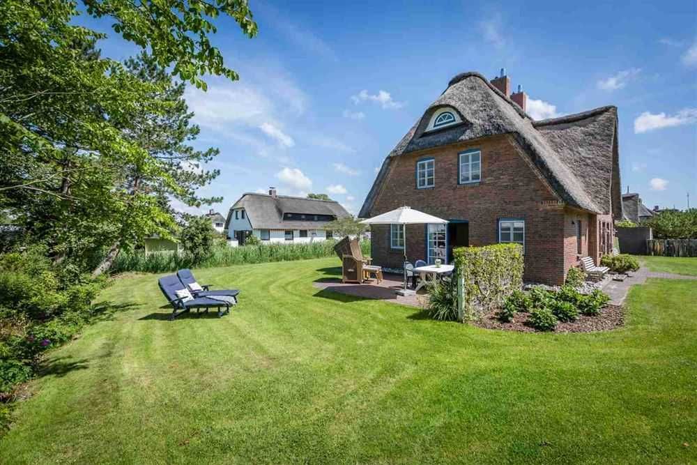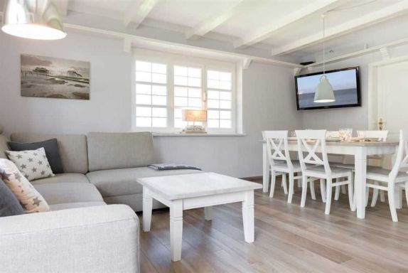 Exklusive Ferienhaushälfte im Haus Frieseneck, landestypisch unter Reet, mit 4 Zimmern und ca. 80 qm auf 2 Ebenen (EG, OG) für bis zu 5 Personen. In ruhiger Lage im Ortsteil Ording in St. Peter-Ording. Besondere Behaglichkeit spendet der schöne Kamin im Wohnzimmer. Zur Haushälfte gehören eine sonnige Westterrasse und ein gemeinschaftlicher Garten um das Haus.