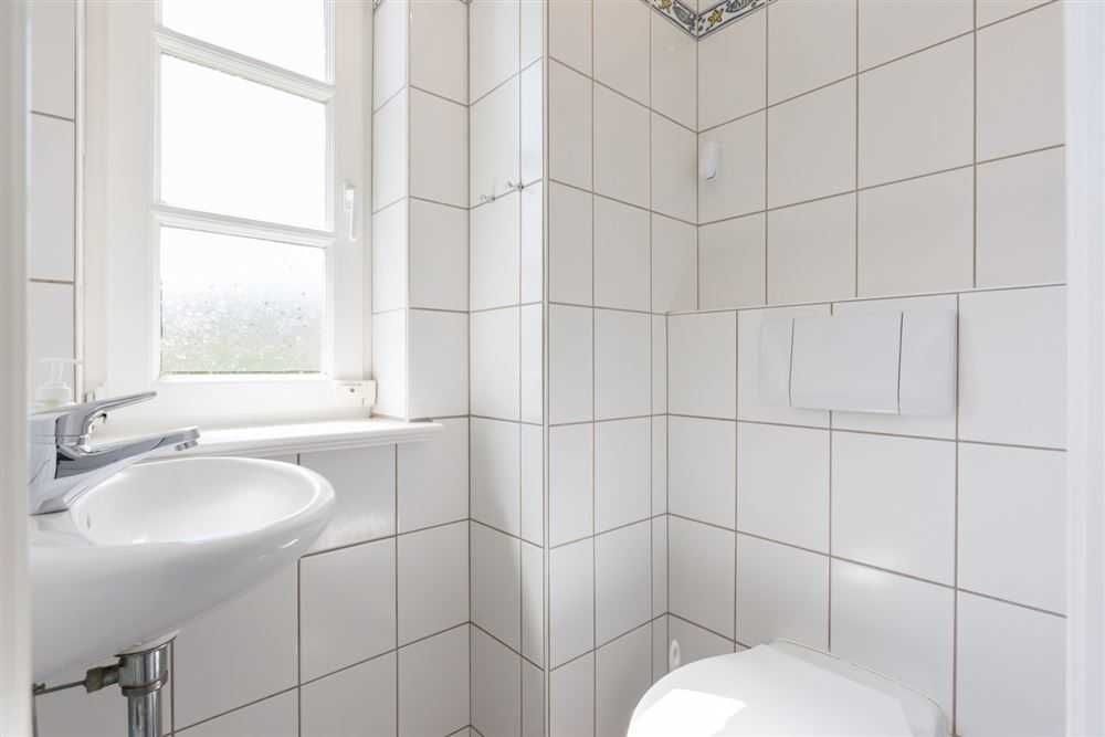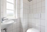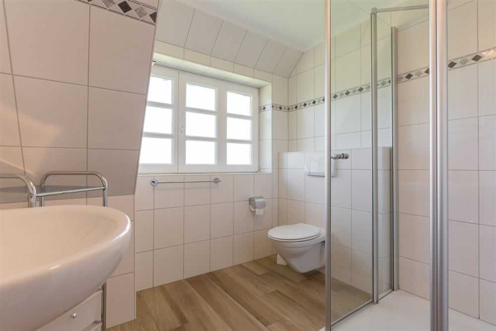 Badezimmer (Duschbad) mit Dusche mit niedrigem Eintritt (ca. 5 cm), WC, Tageslicht und Föhn.