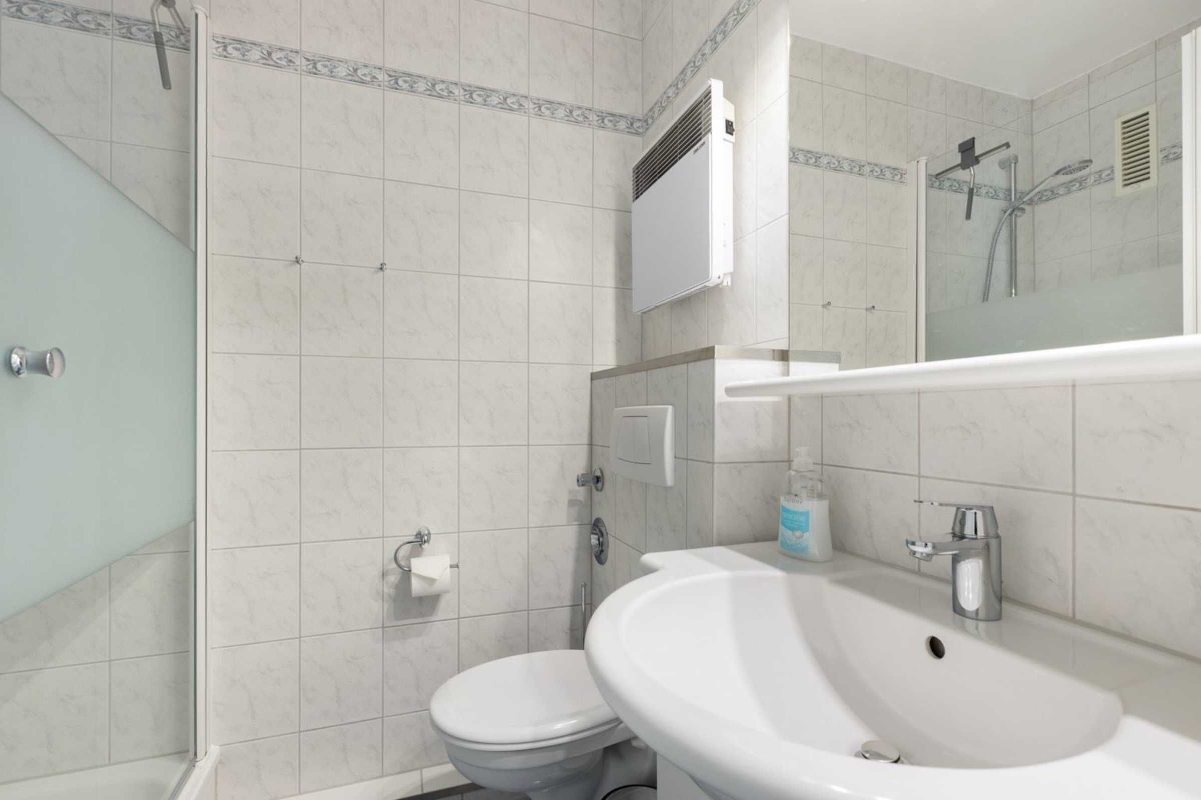 Badezimmer (Duschbad) mit Dusche und WC. Kein Föhn.