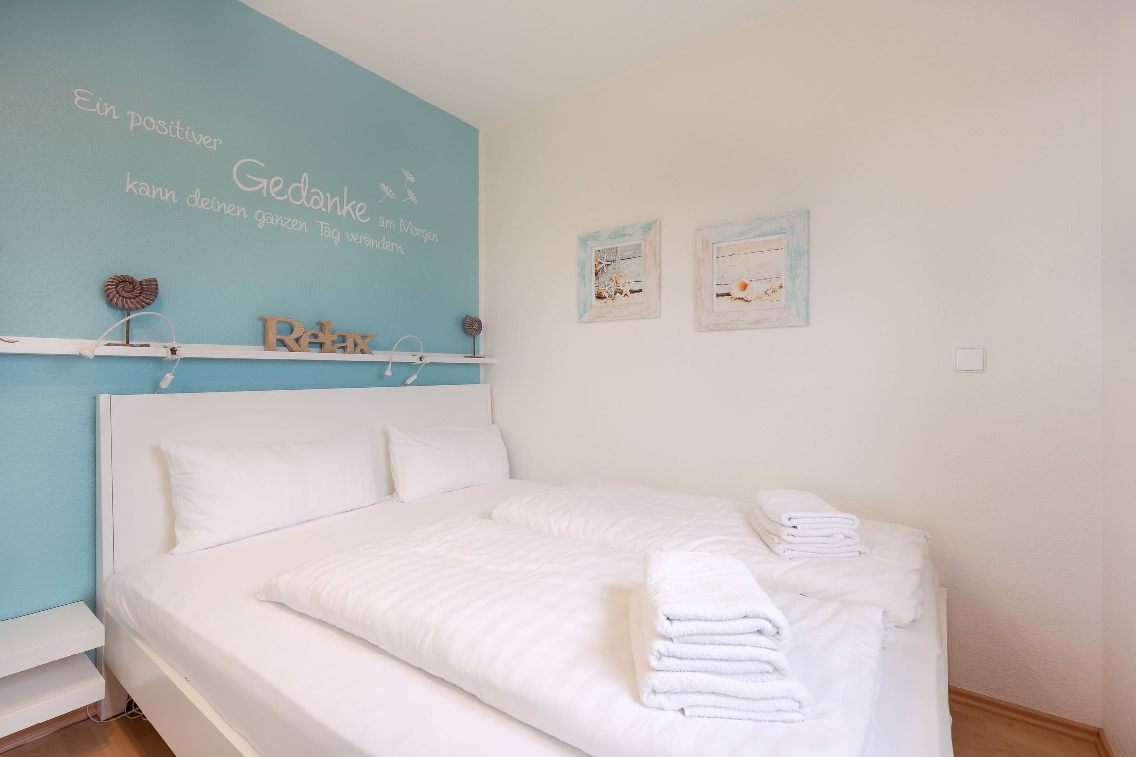 1. Schlafzimmer mit Doppelbett (160x200cm) und herrlichem Meerblick.