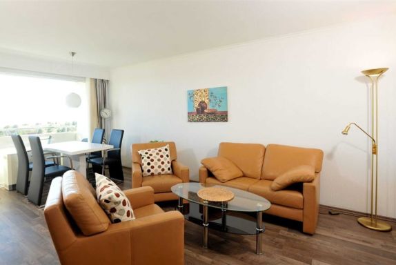 Elegant modernisierte 2 1/2-Zimmer-Ferienwohnung im Haus Atlantic mit ca. 47 qm auf 1 Ebene (8. OG, mit Fahrstuhl) für bis zu 4 Personen (Wohlfühlbelegung: max. 2 Erwachsene). In strandnaher Lage im Ortsteil Bad in St. Peter-Ording. Mit herrlichem Meerblick aus der Wohnung und vom Balkon.