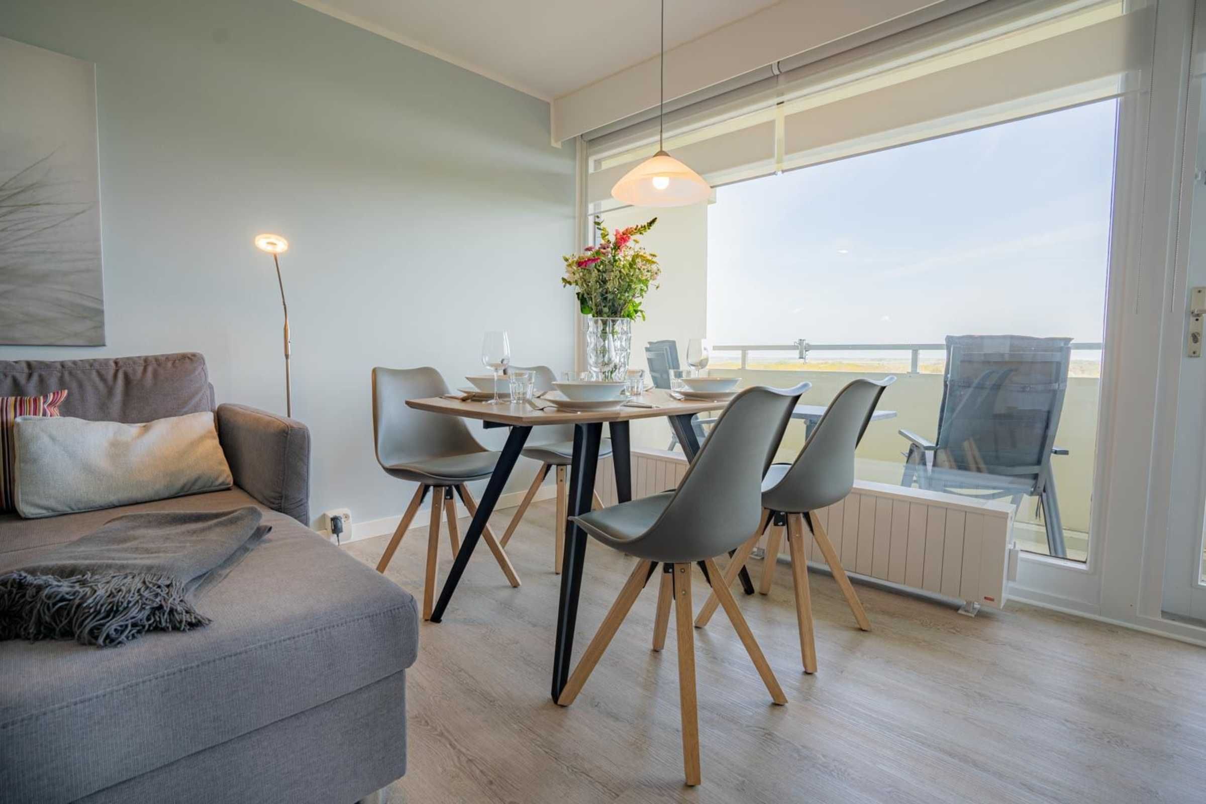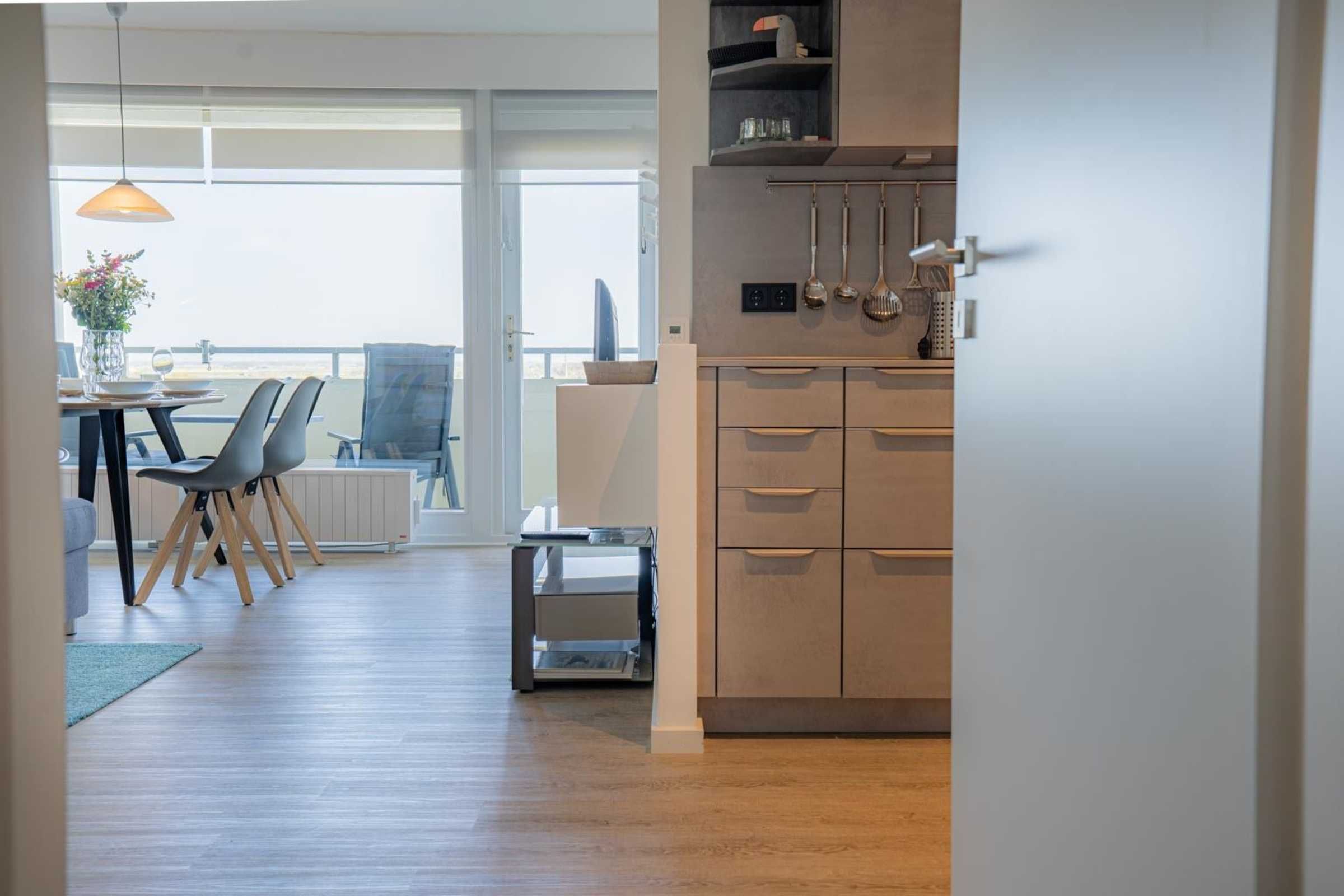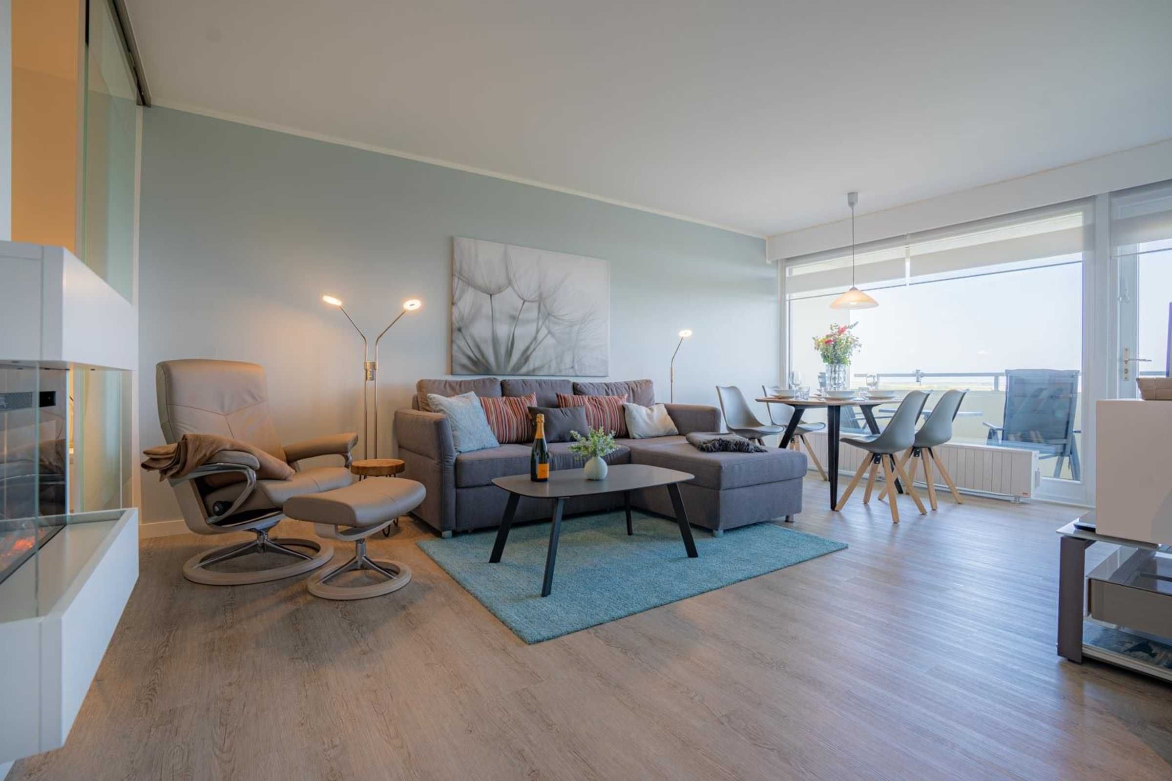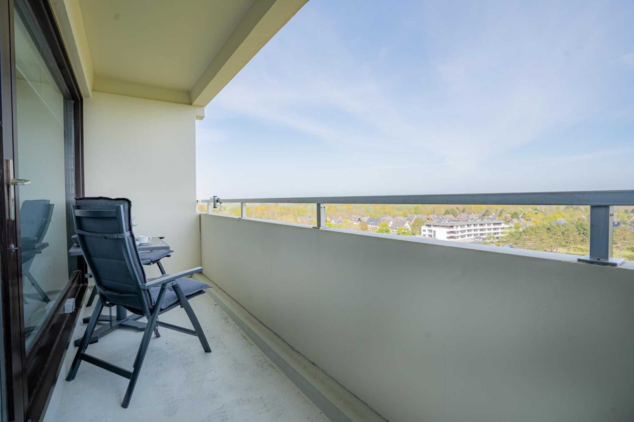 Gemütliche 2 1/2-Zimmer-Ferienwohnung im Haus Atlantic mit ca. 47 m² auf 1 Ebene (9. OG, mit Fahrstuhl) für bis zu 2 Personen. Strandnahe Lage im Ortsteil Bad in St. Peter-Ording. Genießen Sie einen einzigartigen, weiten Ausblick vom Balkon und aus der Wohnung bis auf's Meer.