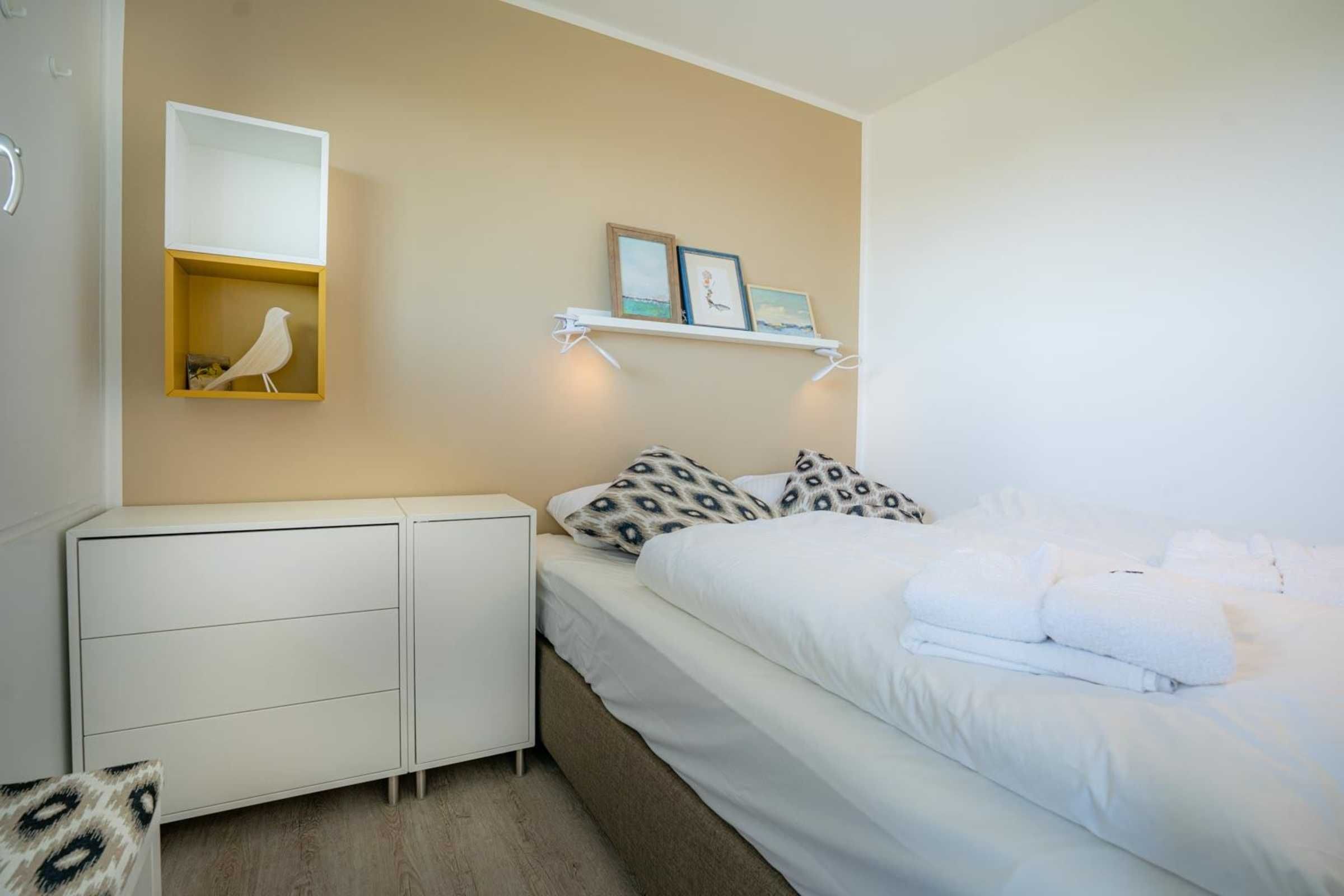 1. Schlafzimmer mit 1 Doppelbett (160x200cm, Boxspringbett) und Kommode.