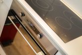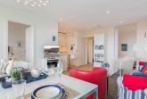 Wohnzimmer mit Sofa für 3 Personen, 2 Sesseln, TV (Sat), DVD-Player, Stereo-Kompaktanlage und Esstisch mit 3 Stühlen. Direkter Zugang zum möblierten Balkon nach Westen mit wunderschönem, weitem Meerblick. Offene Küche mit Backofen, Kühlschrank mit Gefrierfach, Geschirrspüler und kleinem Tresen mit 2 Stühlen.