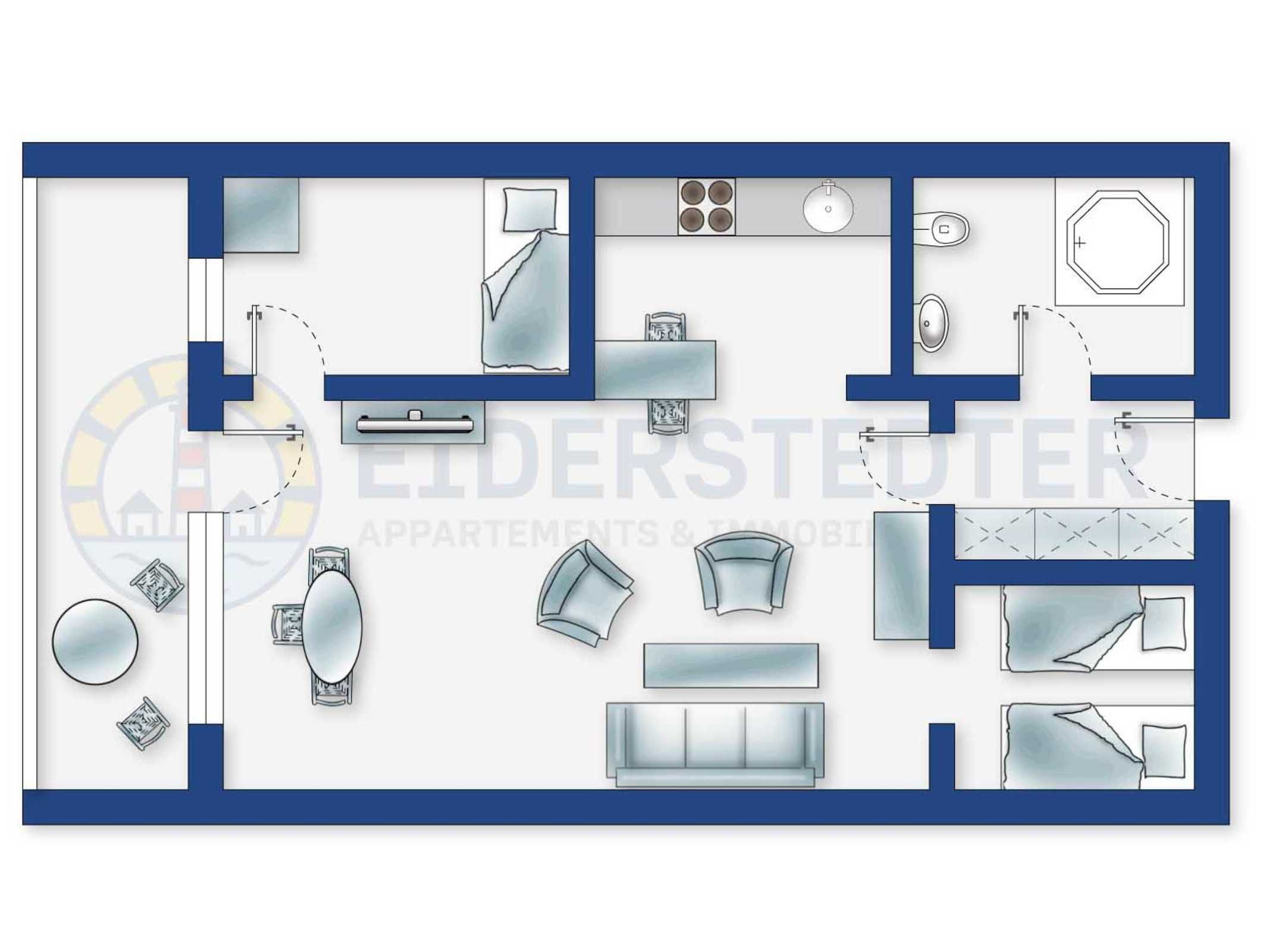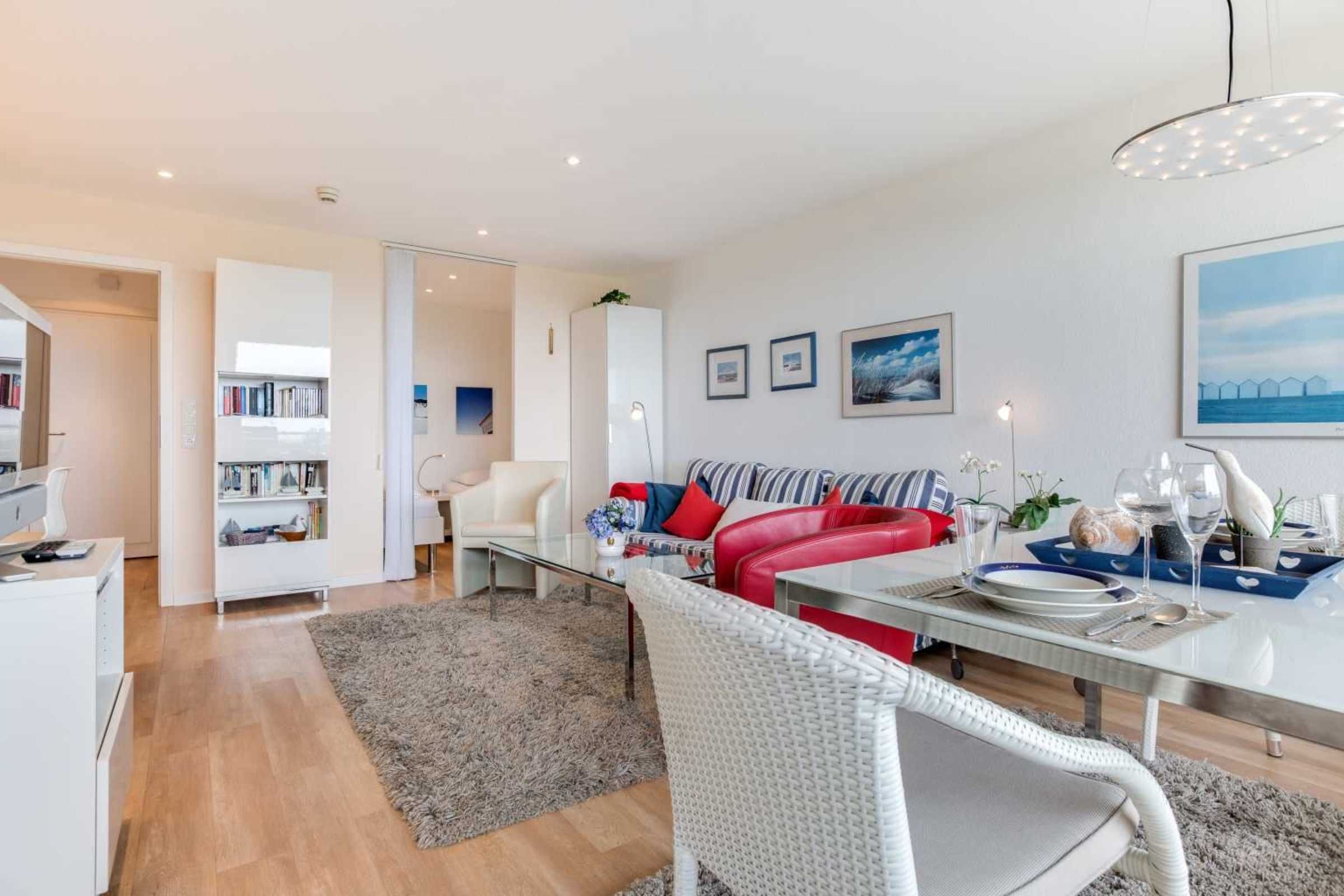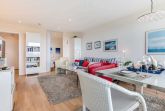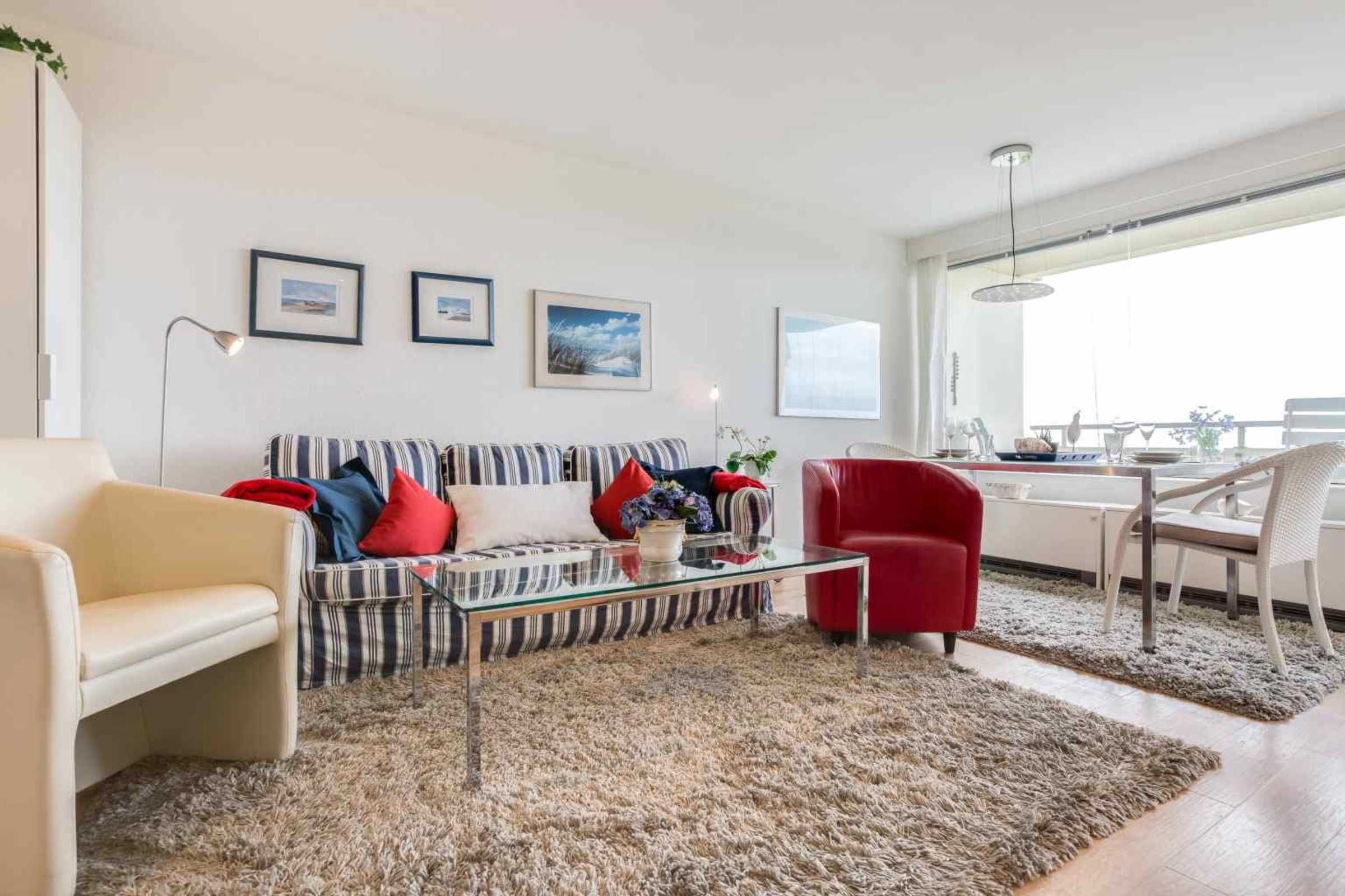 Elegant modernisierte 2 1/2-Zimmer-Ferienwohnung Sundowner im Haus Atlantic mit ca. 47 qm auf 1 Ebene (12. OG, mit Fahrstuhl) für bis zu 3 Personen. In strandnaher Lage im Ortsteil Bad in St. Peter-Ording. Genießen Sie den vielleicht schönsten Ausblick in ganz St. Peter-Ording - bis weit über die Nordsee.