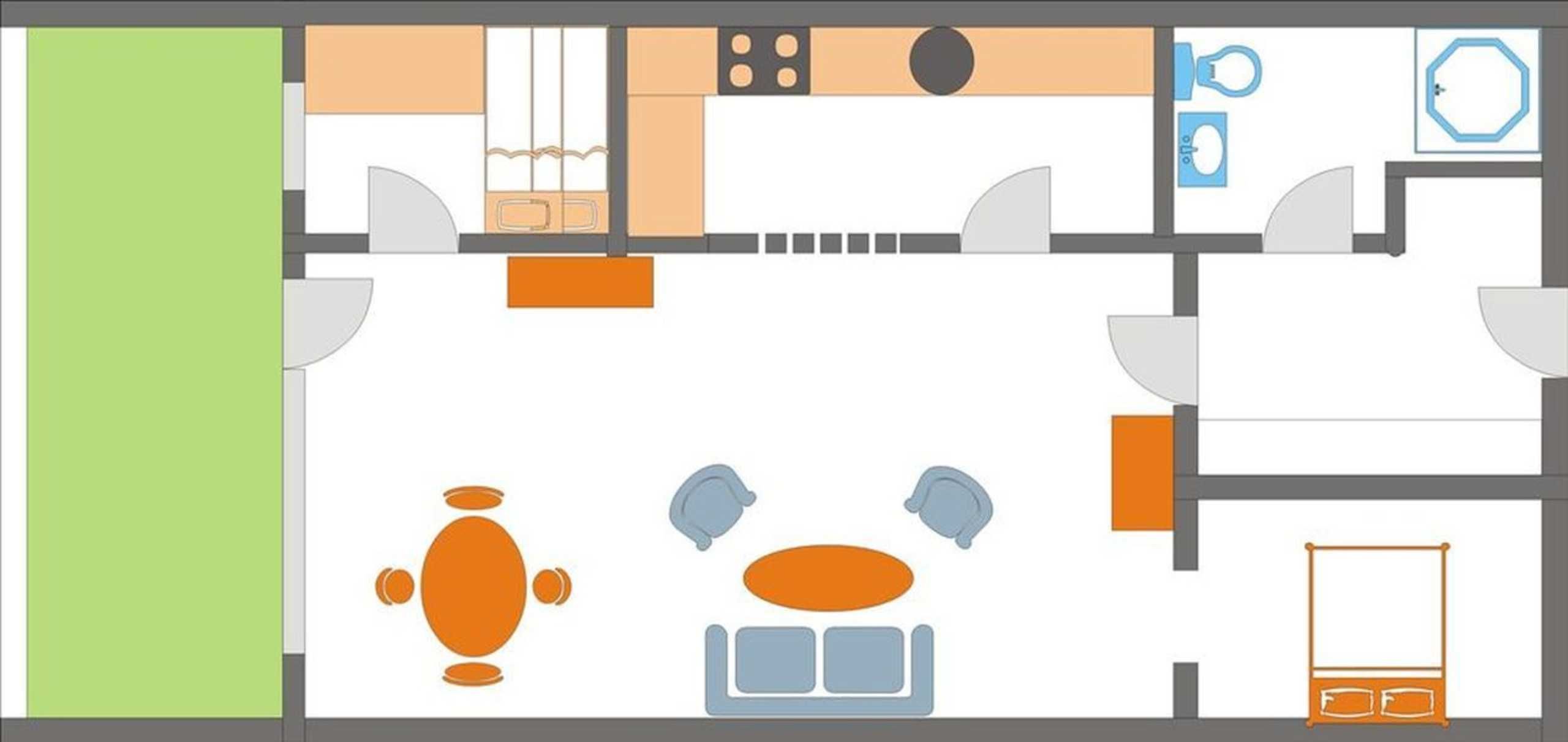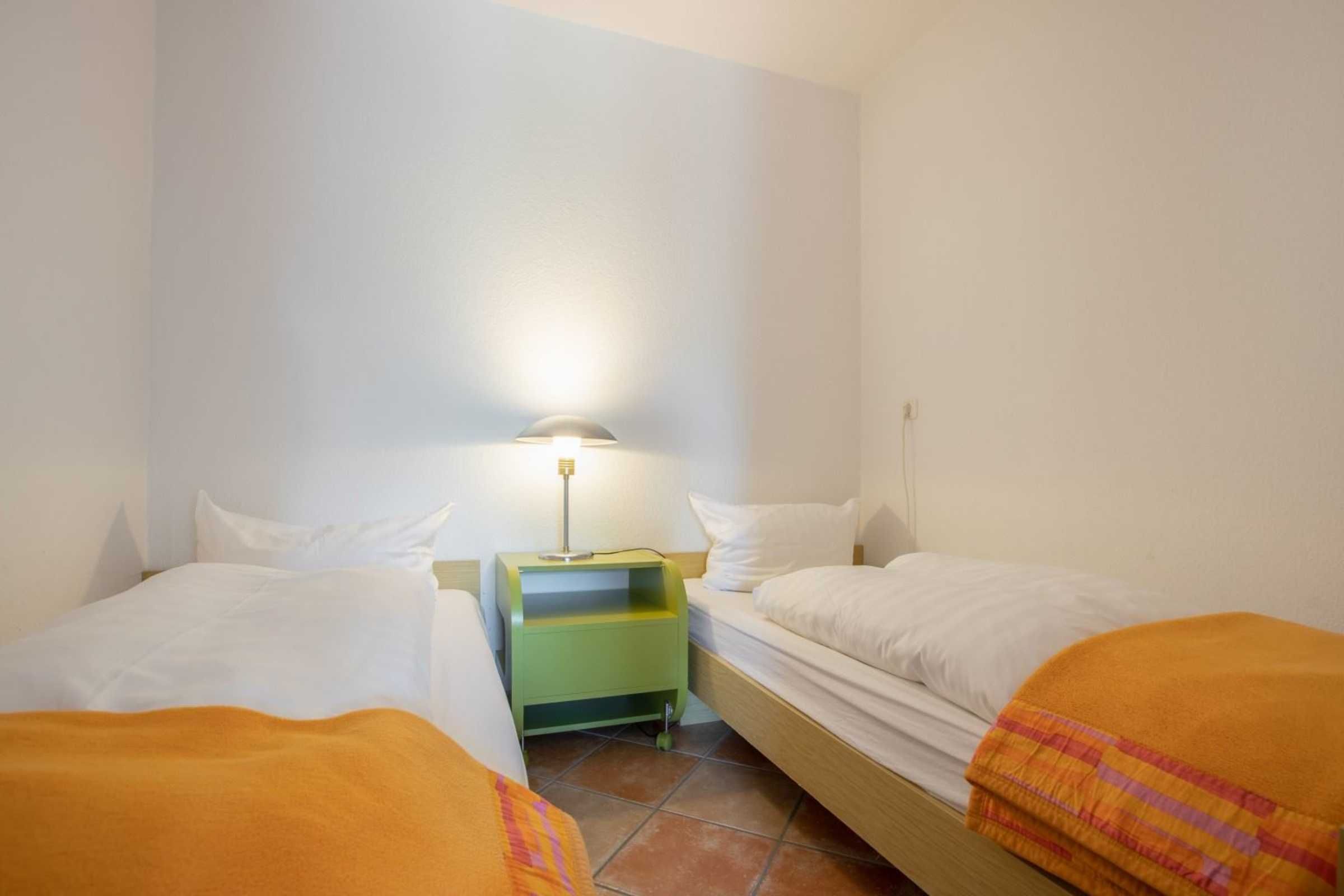 1. Schlafzimmer mit 2 Einzelbetten (je 90x190cm). Dieses Schlafzimmer ist durch einen Vorhang vom Wohnzimmer abgeteilt.