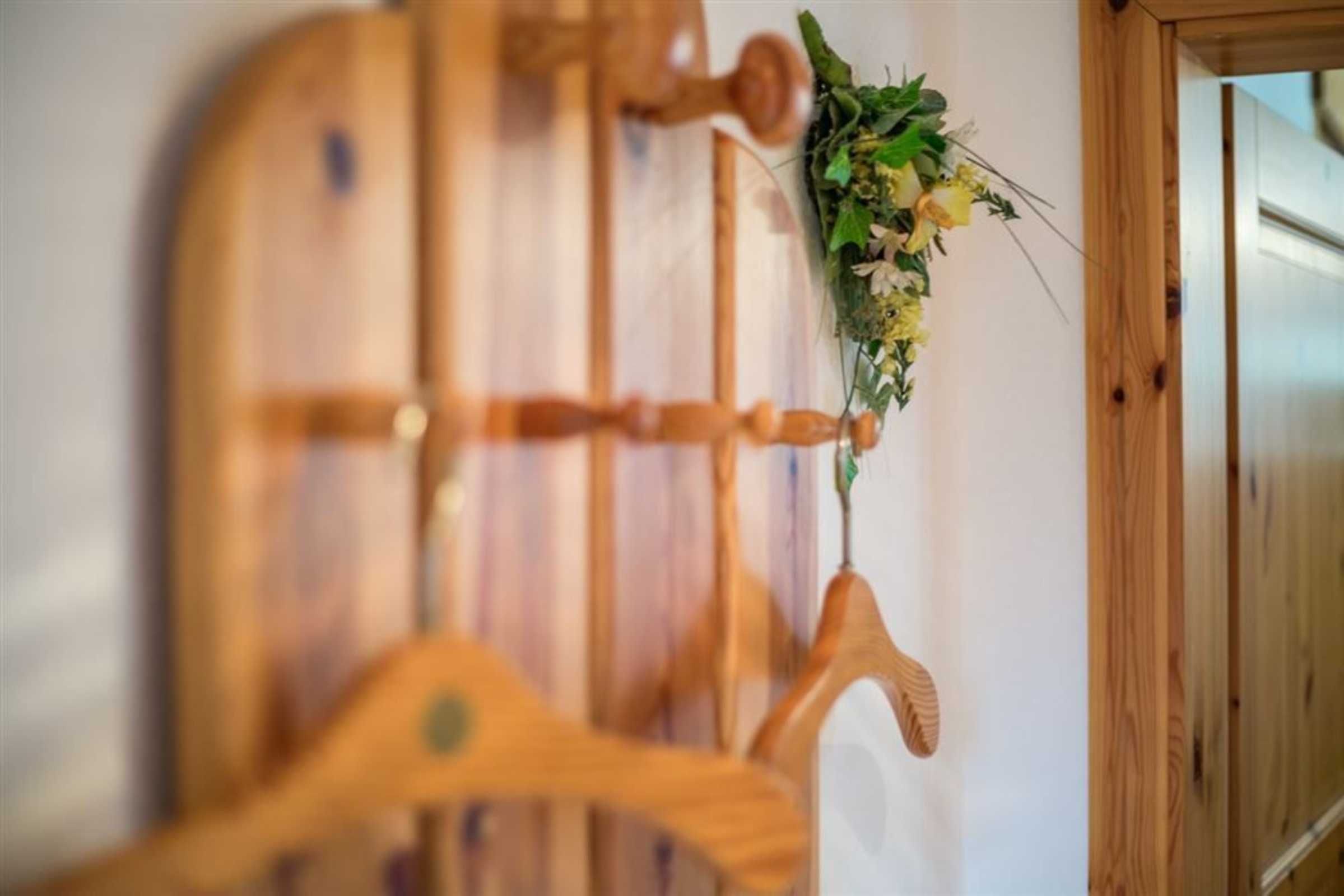 Flur mit Garderobe und Spiegel im Eingangsbereich.