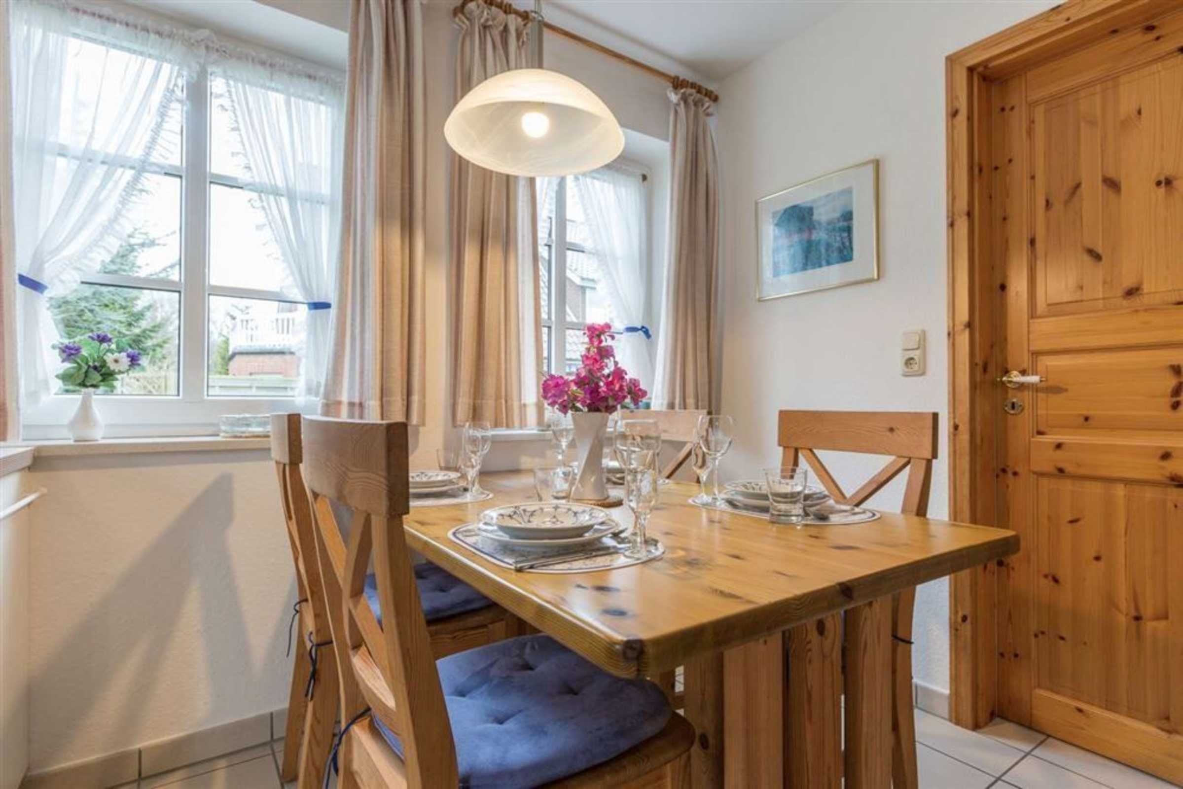 Gemütliche 2-Zimmer-Ferienwohnung Seebüll mit ca. 45 qm auf 1 Ebene (EG) für bis zu 4 Personen. Ruhige Lage an einem Wäldchen im Ortsteil Bad in St. Peter-Ording. Zur Dorfstraße sowie zum Kurzentrum sind es nur 15 Minuten zu Fuß, eine Bushaltestelle ist in der Nähe. Im Garten befinden sich Kinderspielgeräte. Dieses Domizil ist ideal für einen Familienurlaub an der Nordsee.