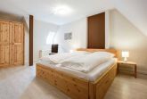 Schlafzimmer mit Doppelbett (2x 90x200cm), Kleiderschrank, Kommode und Stuhl.