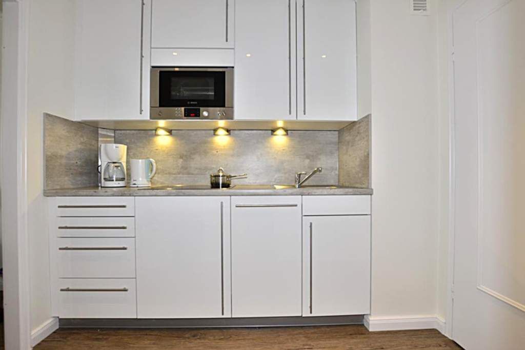 Die Küchenzeile hat einen Geschirrspüler, eine Mikrowelle, ein Ceranfeld mit 4 Kochfeldern, einen Kühlschrank mit 3*-Gefrierfach. Kaffeemaschine, Wasserkocher und Toaster gehören zur Grundausstattung.