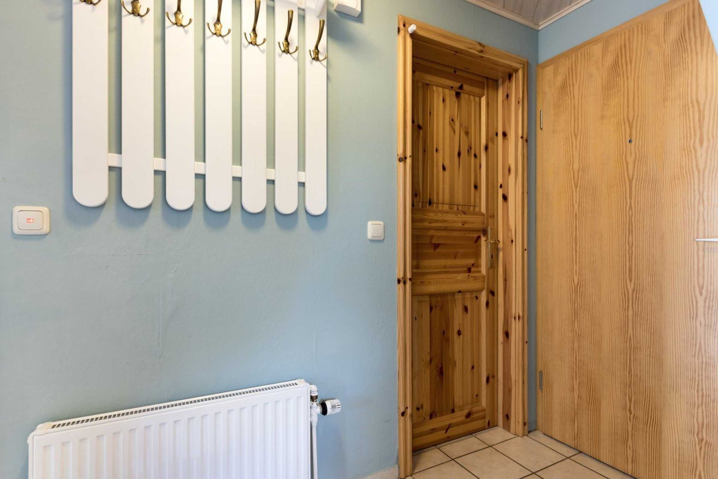Flur mit Garderobe und Spiegel im Eingangsbereich.