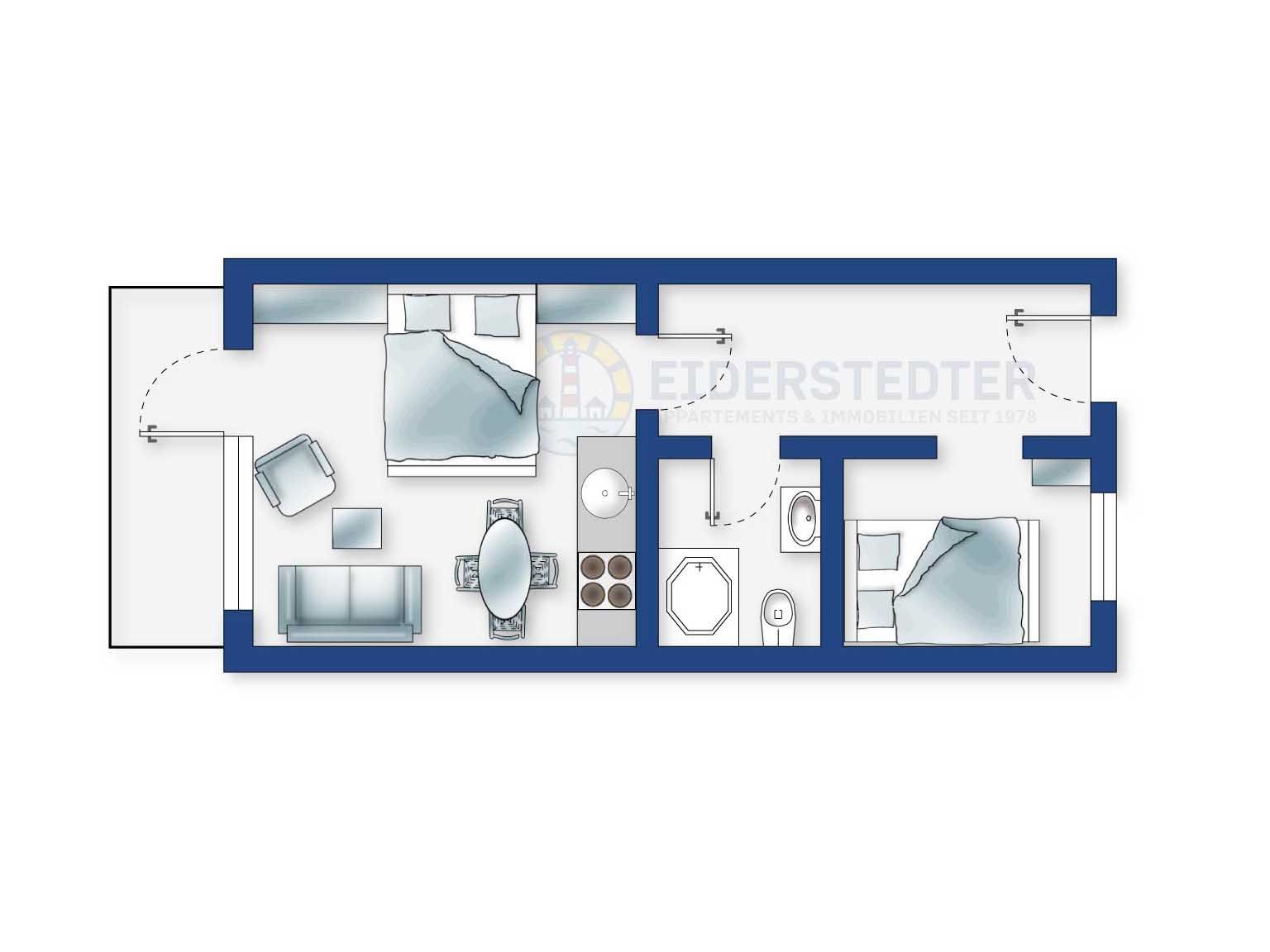 Komfortable 2-Zimmer-Ferienwohnung im Haus Am Deich 1 mit ca. 42 m² auf 1 Ebene (EG) für bis zu 3 Personen (Wohlfühlbelegung: max. 2 Erwachsene). Direkt am Deich und Wald im beliebten Ortsteil Ording in St. Peter-Ording. Der Strand mit seinen Pfahlbauten ist schnell zu Fuß erreichbar. Einfach ankommen, abschalten und die herrliche Nordseeluft und den weitläufigen Strand genießen. Ein gut erzogener Hund ist herzlich willkommen.
