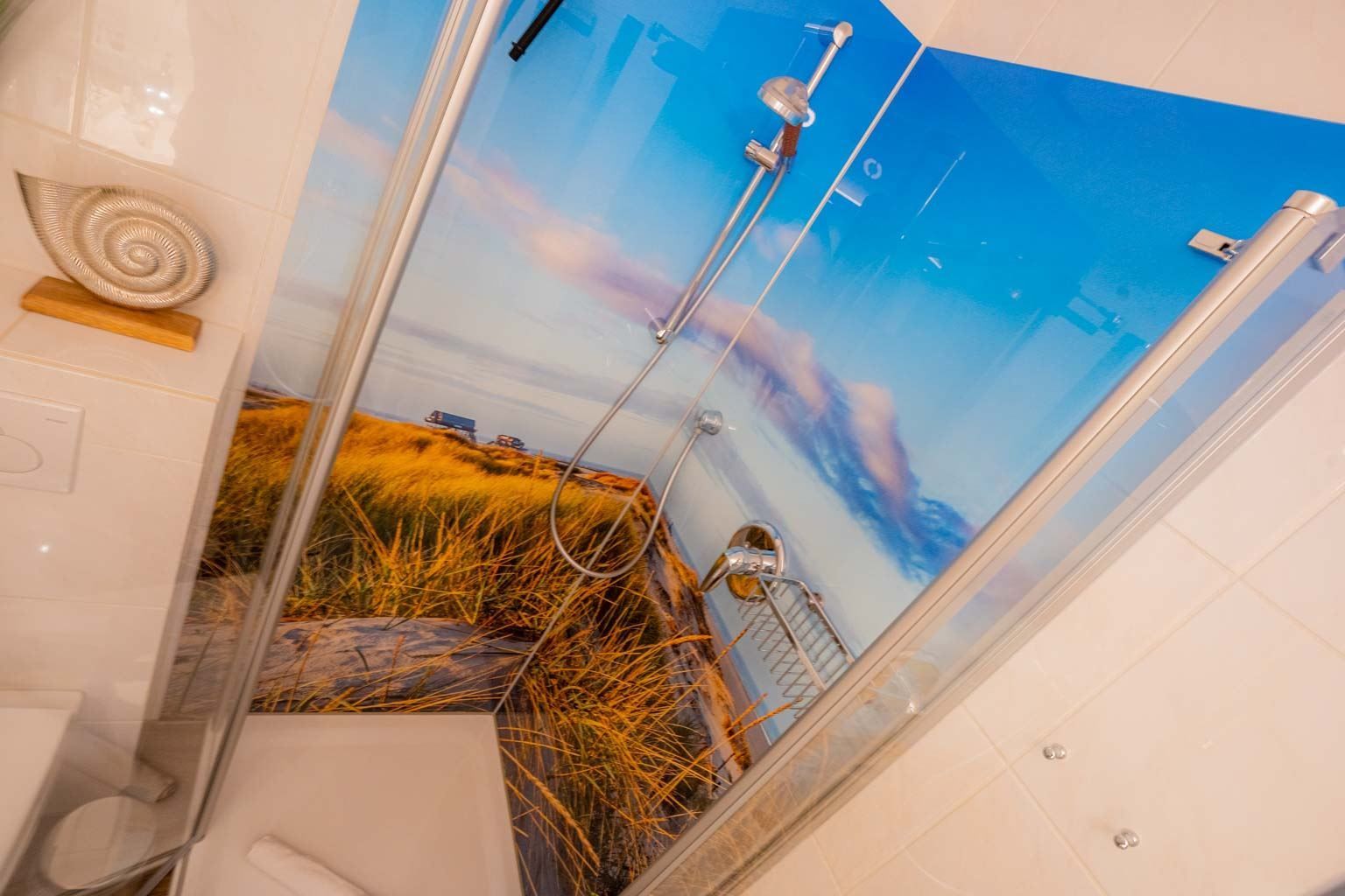 Badezimmer (Duschbad) mit Dusche, WC und Föhn.