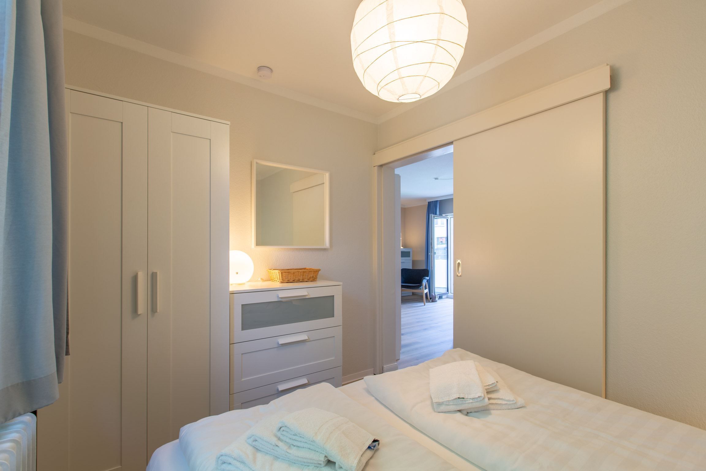 1. Schlafzimmer mit Doppelbett (160x200cm), Kleiderschrank und Kommode.
