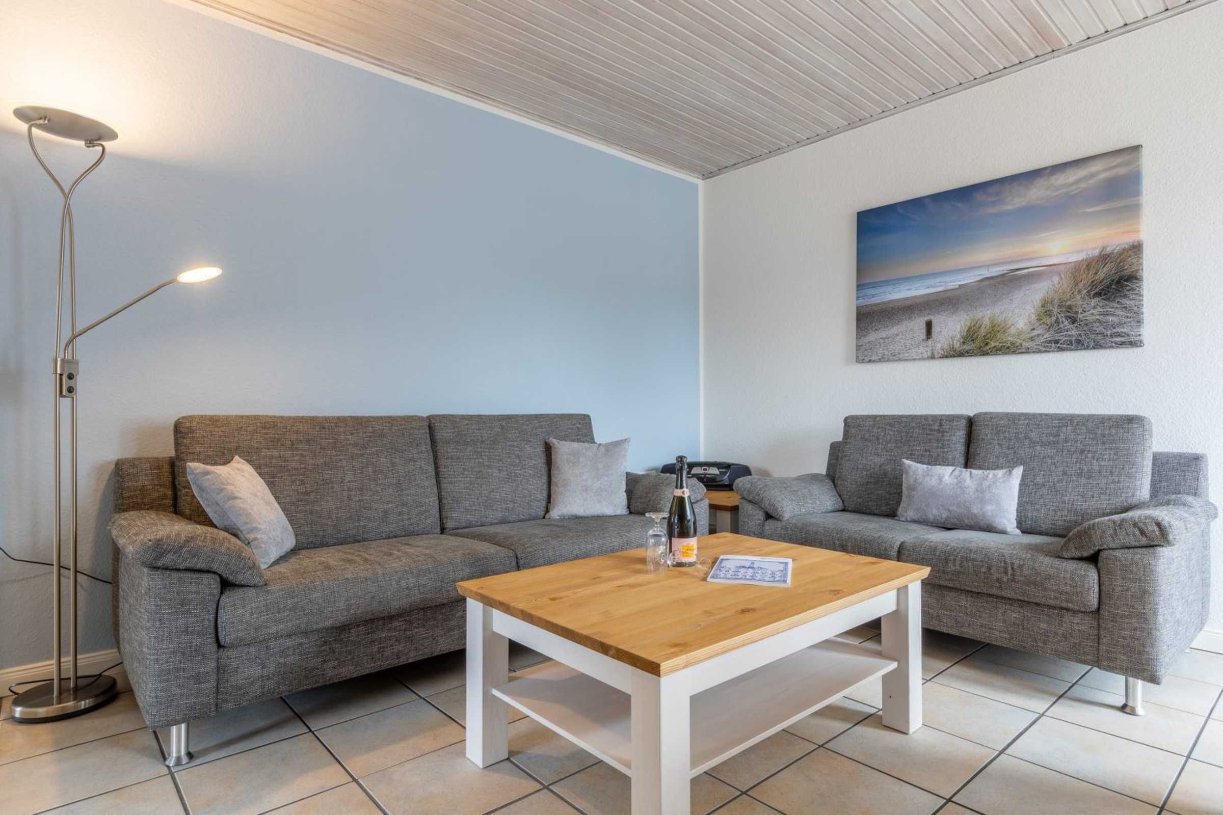 Gemütliche 3-Zimmer-Ferienwohnung Möwe im Haus Back mit ca. 50 qm auf 1 Ebene (OG) für bis zu 4 Personen. Im Ortsteil Bad in St. Peter-Ording gelegen. Mit Balkon nach Süden. Hunde sind herzlich willkommen.