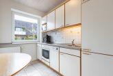 Separate Küche mit Backofen, Mikrowelle, Kühlschrank mit Gefrierfach und Geschirrspüler.