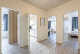 Flur mit Garderobe und Heizungsraum im Eingangsbereich.