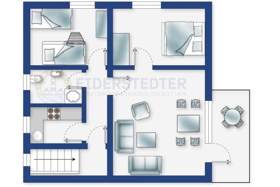 Gemütliche 3-Zimmer-Ferienwohnung Seestern im Haus Back mit ca. 50 qm auf 1 Ebene (OG) für bis zu 4 Personen. Im Ortsteil Bad in St. Peter-Ording gelegen. Mit Balkon nach Süden. Hunde sind herzlich willkommen.