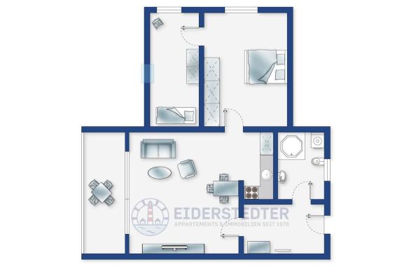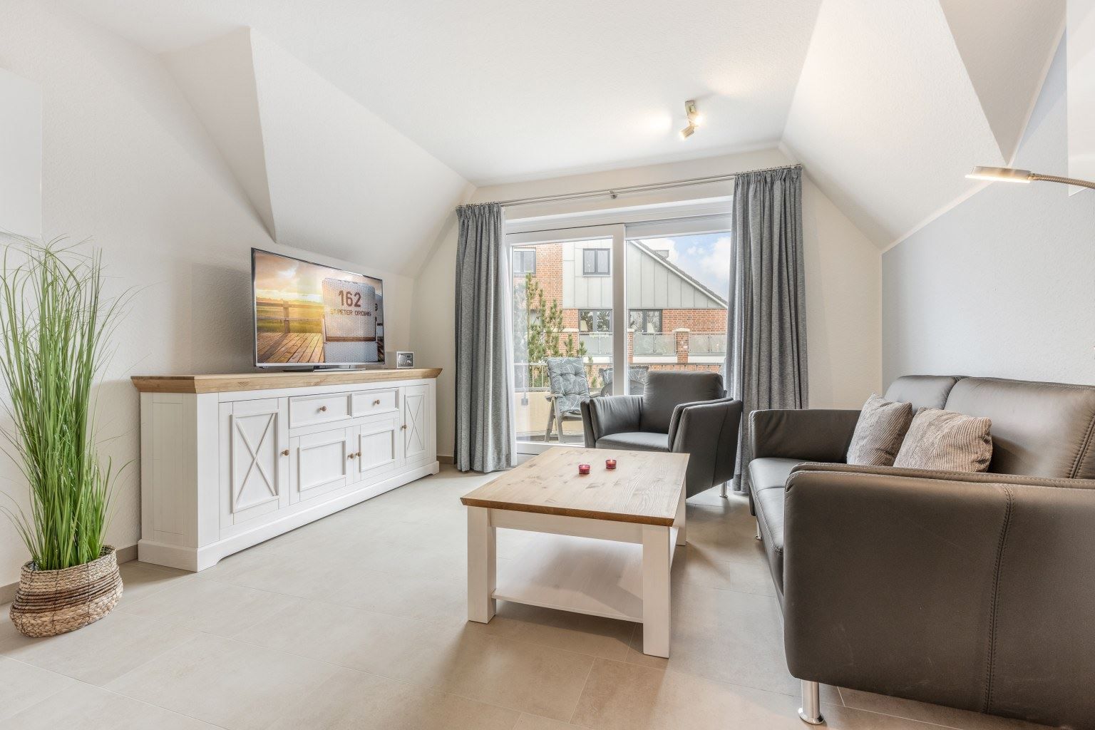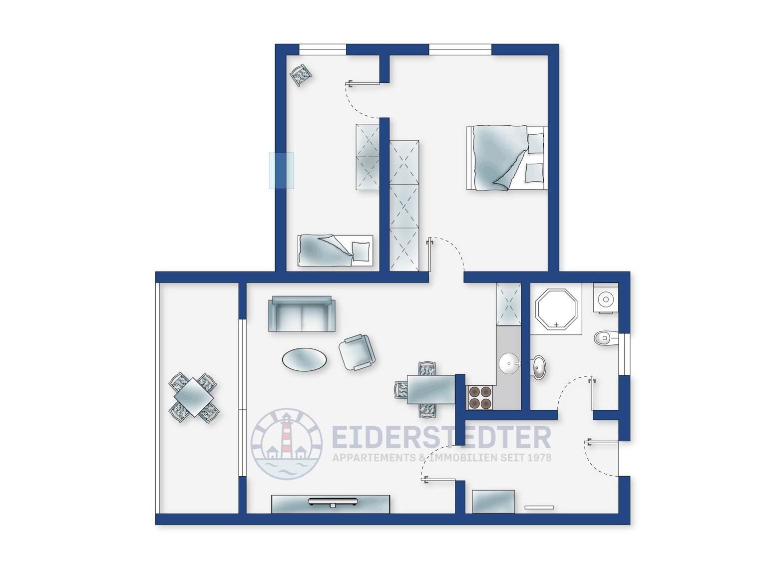 Schöne, helle 2 1/2-Zimmer-Ferienwohnung im Haus Dreilanden mit ca. 55 m² auf 1 Ebene (2. OG) für bis zu 3 Personen. In einer der begehrtesten, weil ausgesprochen zentralen Lage im Ortsteil Bad in St. Peter-Ording. Das Kurzentrum beginnt buchstäblich vor der Haustür und somit sind alle Restaurants und Geschäfte, die Dünentherme sowie die Seebrücke zum Strandabschnitt in wenigen Minuten bequem und schnell zu Fuß erreichbar. Ein Spitzendomizil in Bestlage.