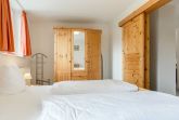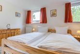 Schlafzimmer mit Doppelbett (2x 90x200cm), Kleiderschrank, Kommode und 2 Stühlen.