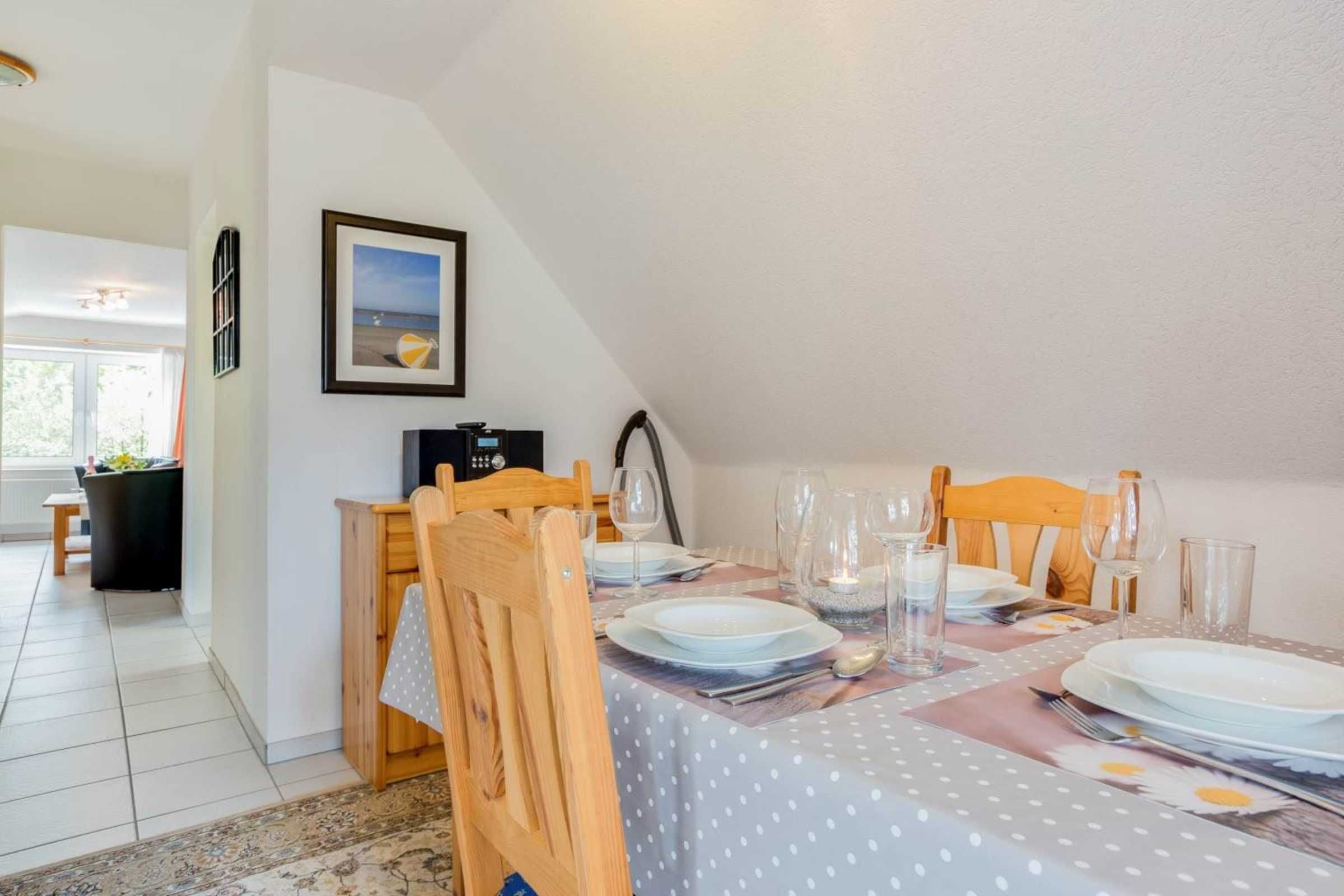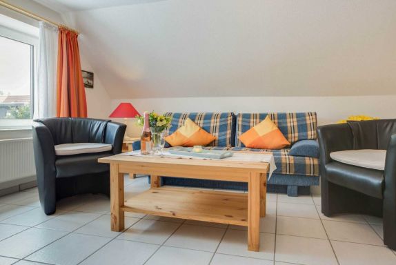 Gemütlich eingerichtete 2-Zimmer-Ferienwohnung im Haus Sturmmöwe mit ca. 45 qm auf 1 Ebene (OG) für bis zu 3 Personen. In ruhiger Lage und nur einen kurzen Fußweg von den Geschäften auf der Dorfstraße entfernt. Auf dem Grundstück des Hauses ist ein schöner Garten mit gemeinschaftlicher Grillecke. Gartenmöbel stehen im gemeinschaftlichen Blockhaus zur Verfügung.