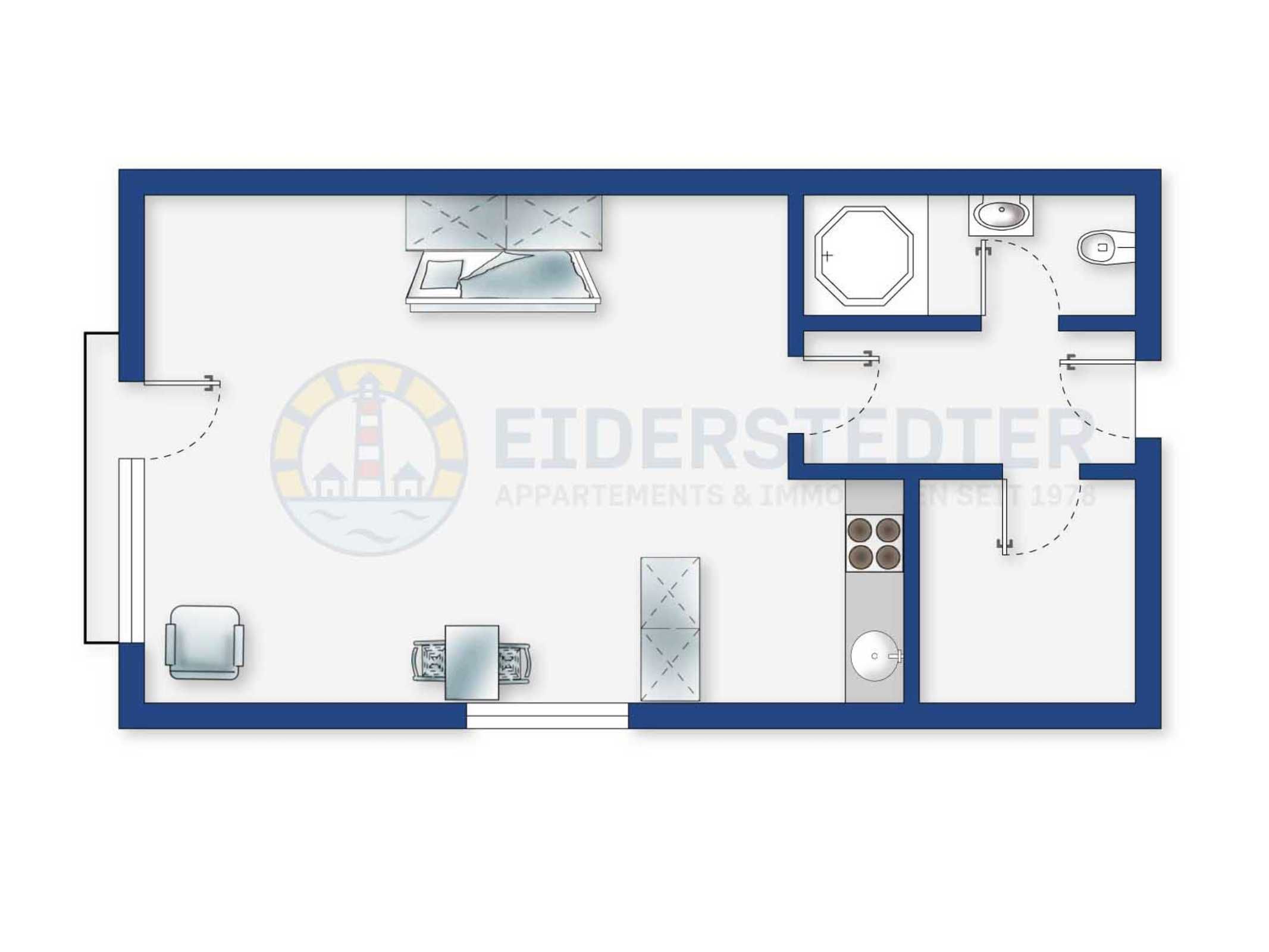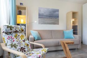 Modernes Studio-Appartement mit ca. 27 qm auf 1 Ebene (2. OG, mit Fahrstuhl) für bis zu 2 Personen. Sehr strandnahe und zentrale Lage im Ortsteil Bad in St. Peter-Ording. Die Strandpromenade ist direkt vor dem Haus und zu allen Geschäften und Restaurants des Kurzentrums ist es nur ein kurzer Fußweg. Entspannen Sie sich in der gemeinschaftlichen Sauna im Haus. Hunde sind herzlich willkommen.