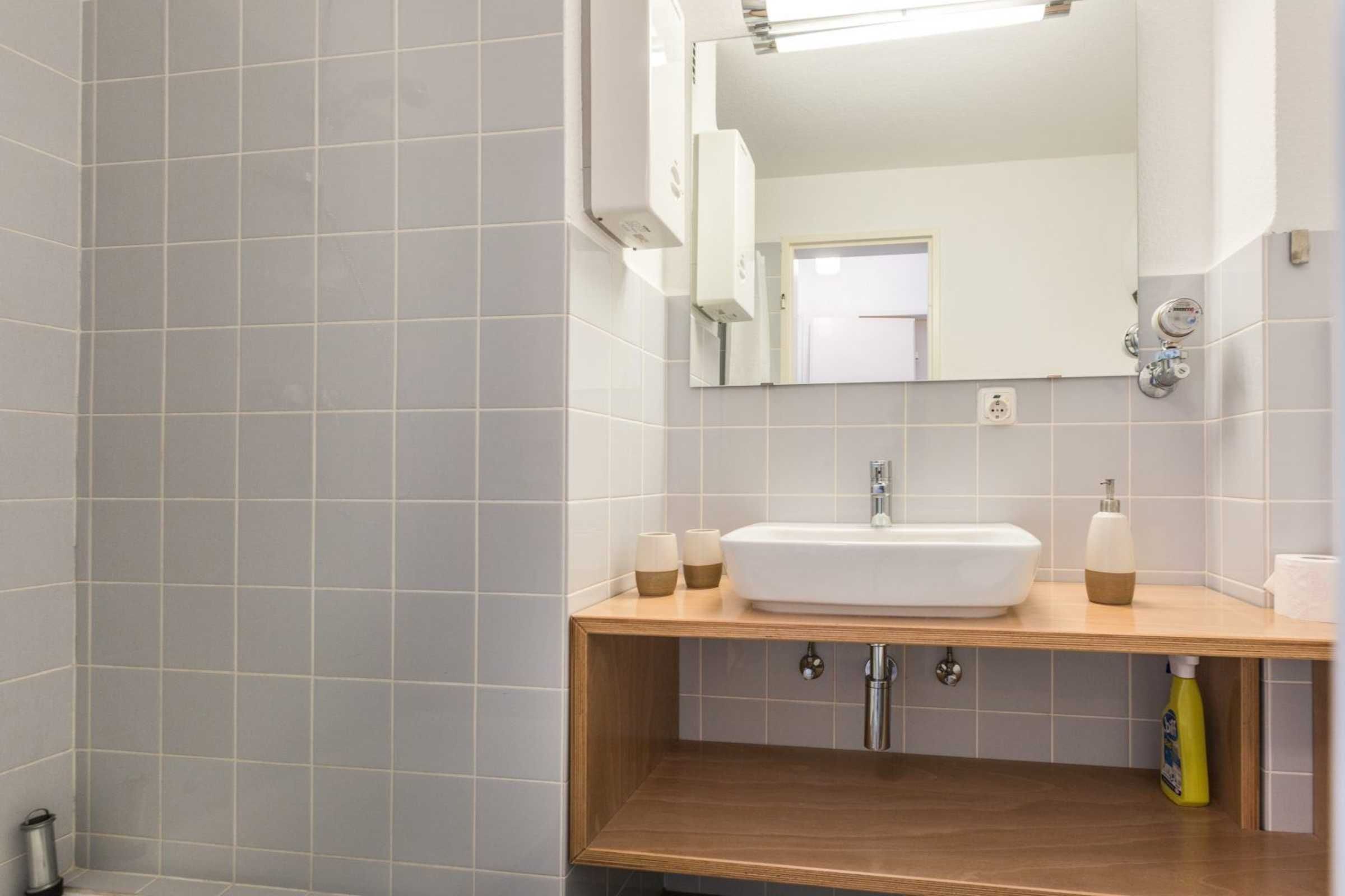 Pkw-Stellplatz vor dem Haus. Fahrradabstellraum (nach Verfügbarkeit), gemeinschaftlicher Tischtennisraum, gemeinschaftliche Waschküche mit Waschmaschine und Trockner gegen Gebühr, Wellnessbereich mit Sauna gegen Gebühr im EG des Hauses vorhanden. Kostenloses WLAN.