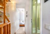 Flur mit Garderobe und Spiegel im Eingangsbereich.