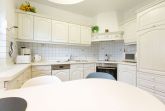 Separate Küche mit Backofen, Mikrowelle, Kühlschrank mit Gefrierfach, Geschirrspüler und Esstisch für bis zu 4 Personen.