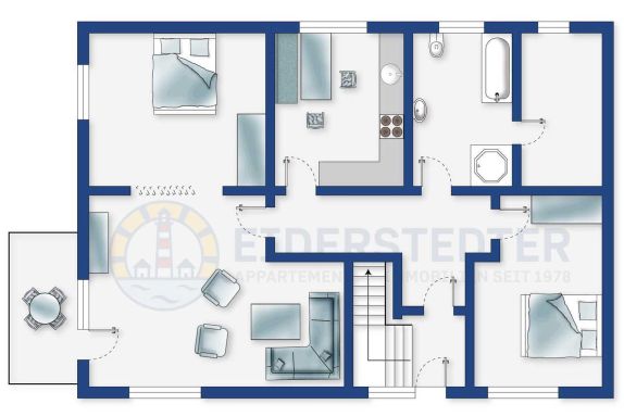 Gemütliche 3-Zimmer-Ferienwohnung im Haus Hildegard mit ca. 78 qm auf 1 Ebene (EG) für bis zu 4 Personen. In ruhiger Lage im Ortsteil Bad in St. Peter-Ording. Ein kleiner Hund ist herzlich willkommen.