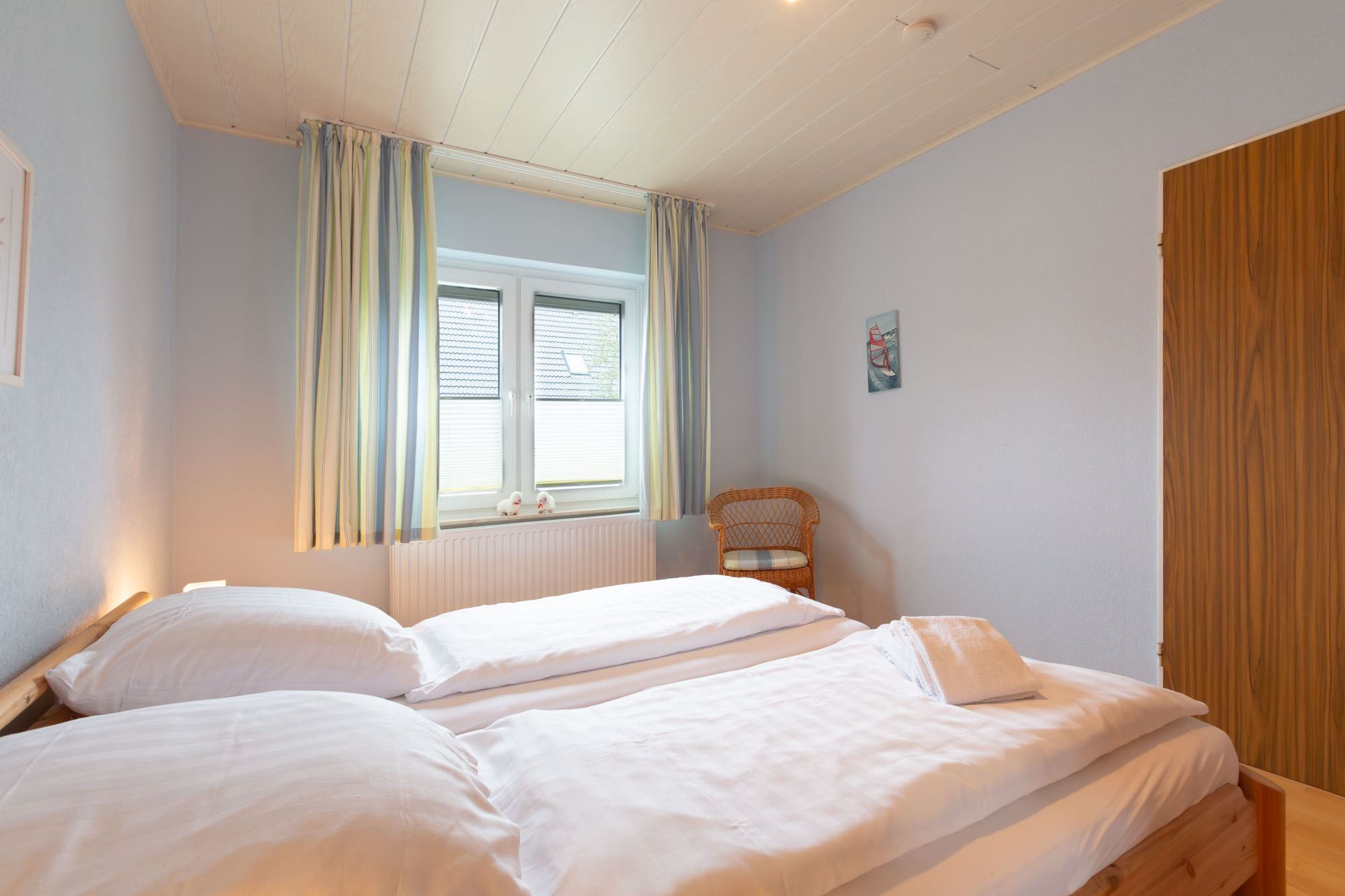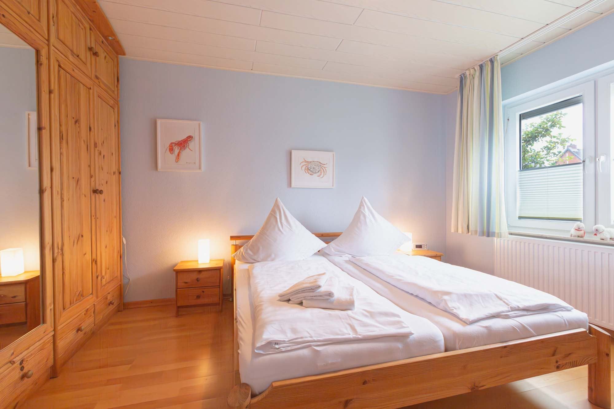 2. Schlafzimmer mit Doppelbett (2x 90x200cm), Kleiderschrank und Sessel.
