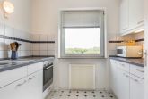 Separate Küche mit Backofen, Mikrowelle, Geschirrspüler und Kühlschrank mit Gefrierfach.