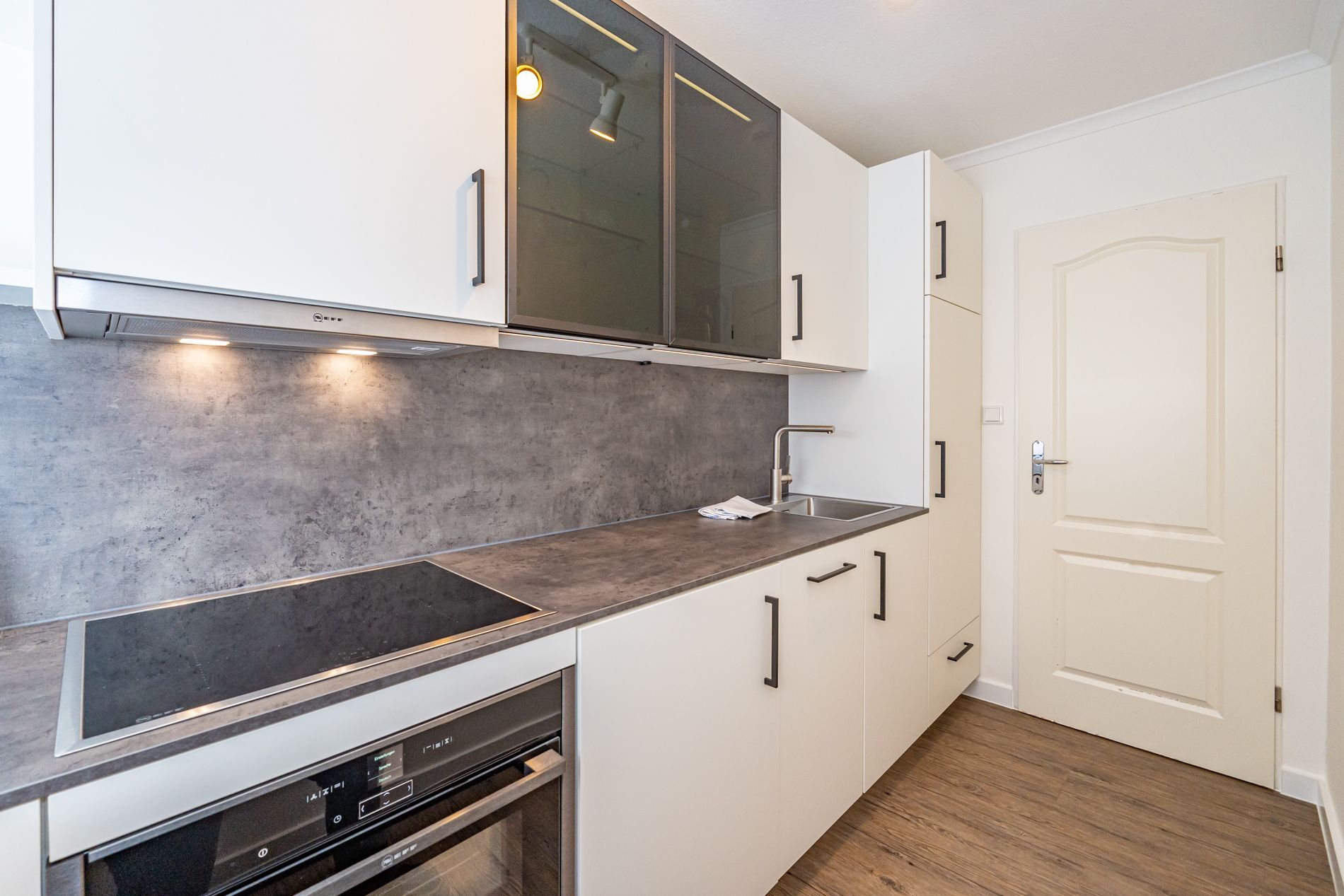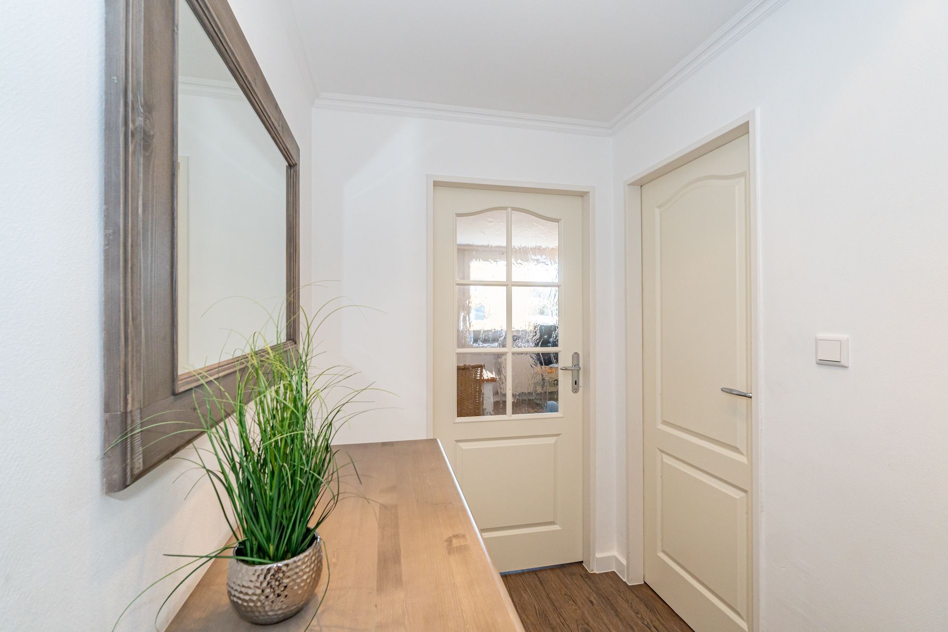 Beide Schlafzimmer sind mit modernem Designerboden in Holzoptik ausgestattet.
